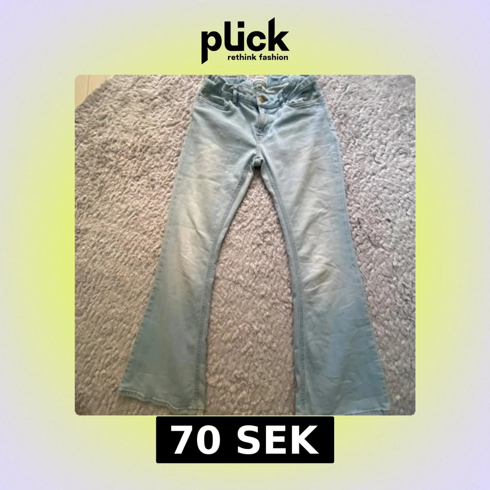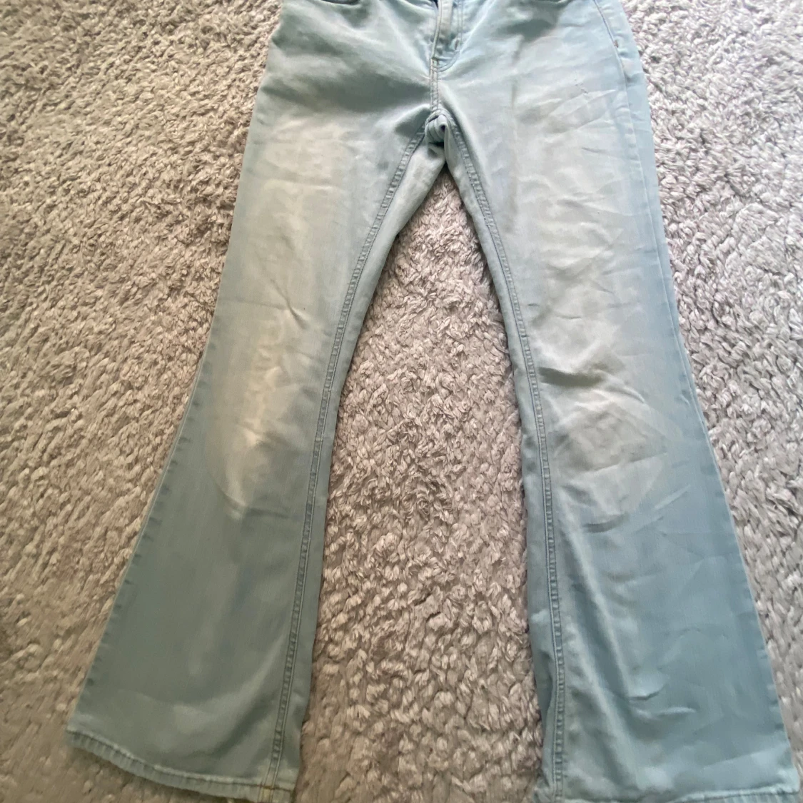 Säljer ett par supersnygga ljusblå jeans med bootcut passform. Priset går att diskutera 😊Hör av er om ni är intresserade☺️Har fläckar på baksidan, men de syns knappast.