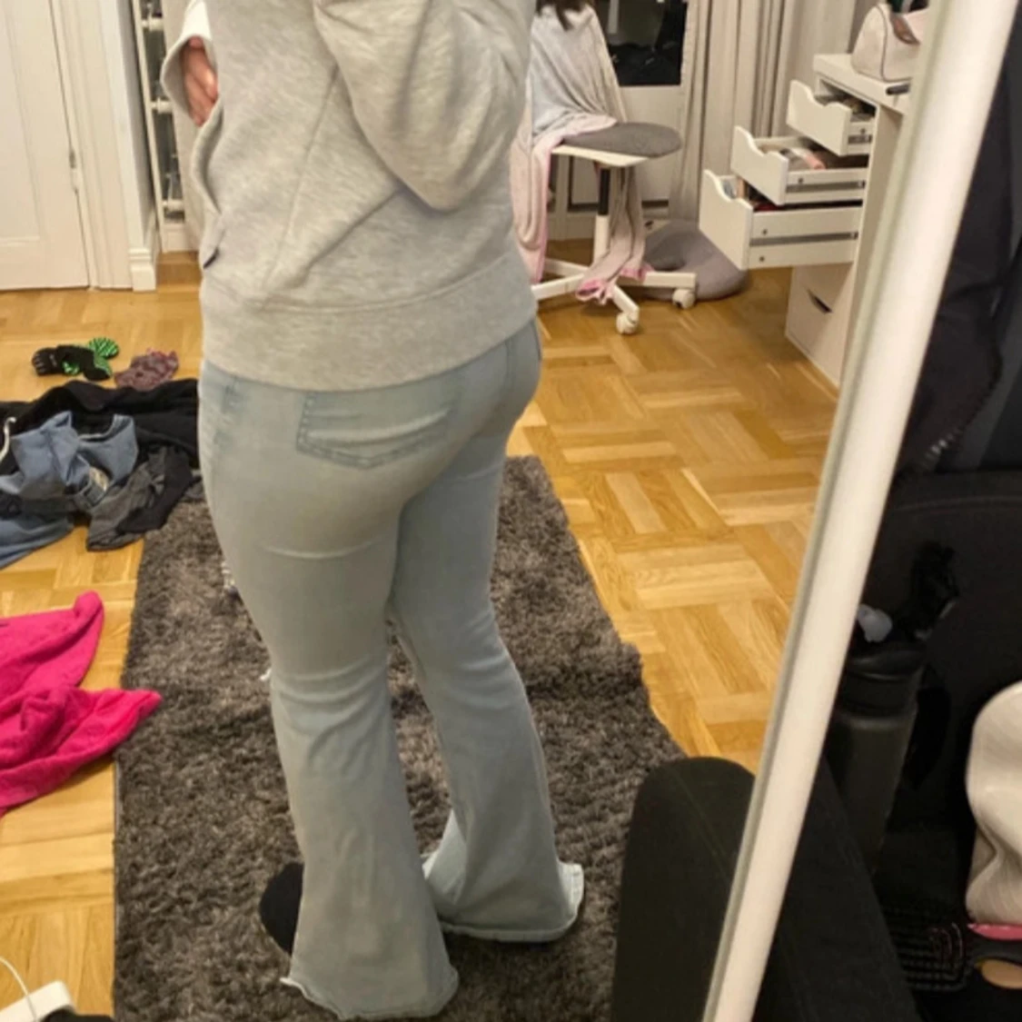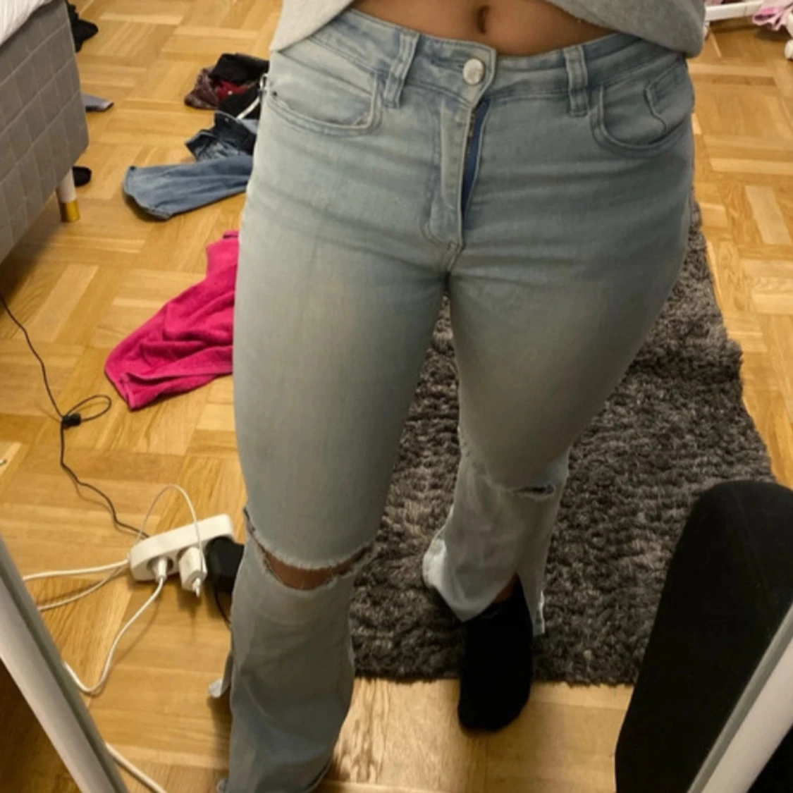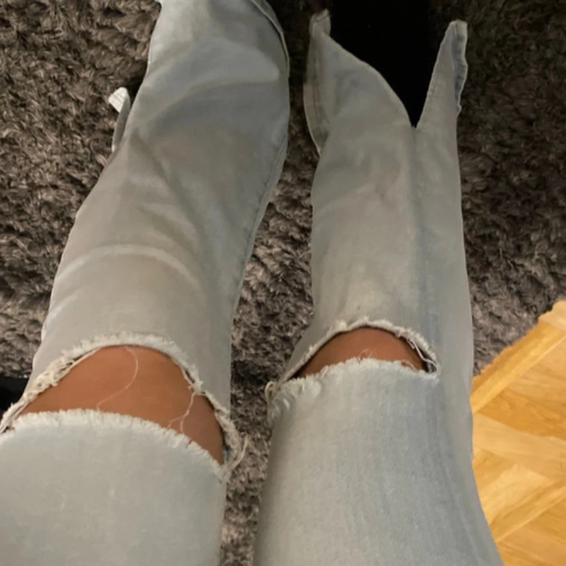 Jötte snygga blå jenas med hög midja med 2 hål på knäna