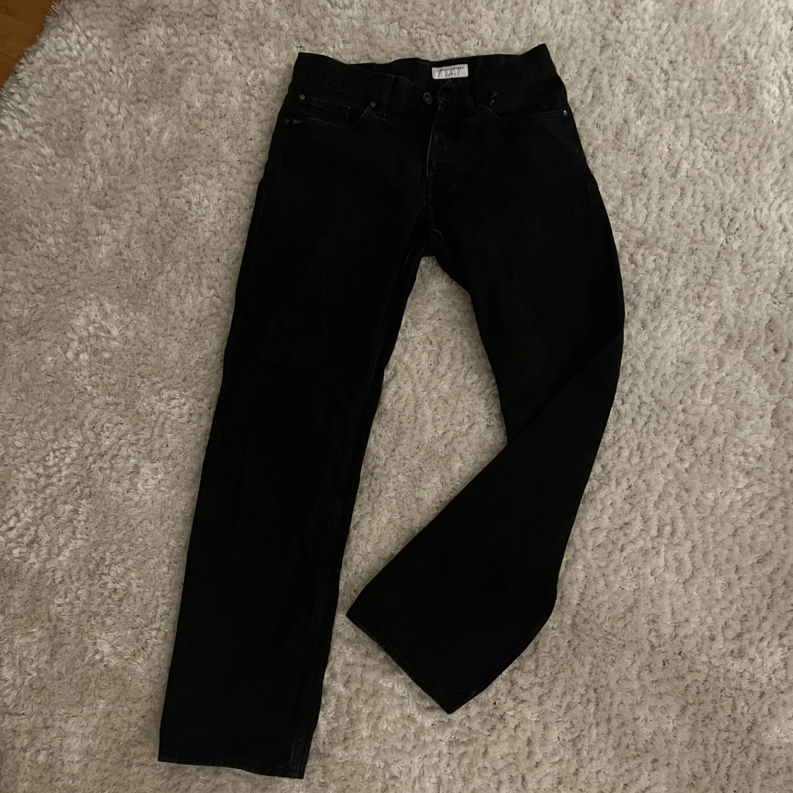 Snygga svarta jeans från Tiger of Sweden med klassisk design. De har en rak passform och är tillverkade i ett slitstarkt material. Perfekta för en stilren look. Strlk 29/32 nästan oanvända