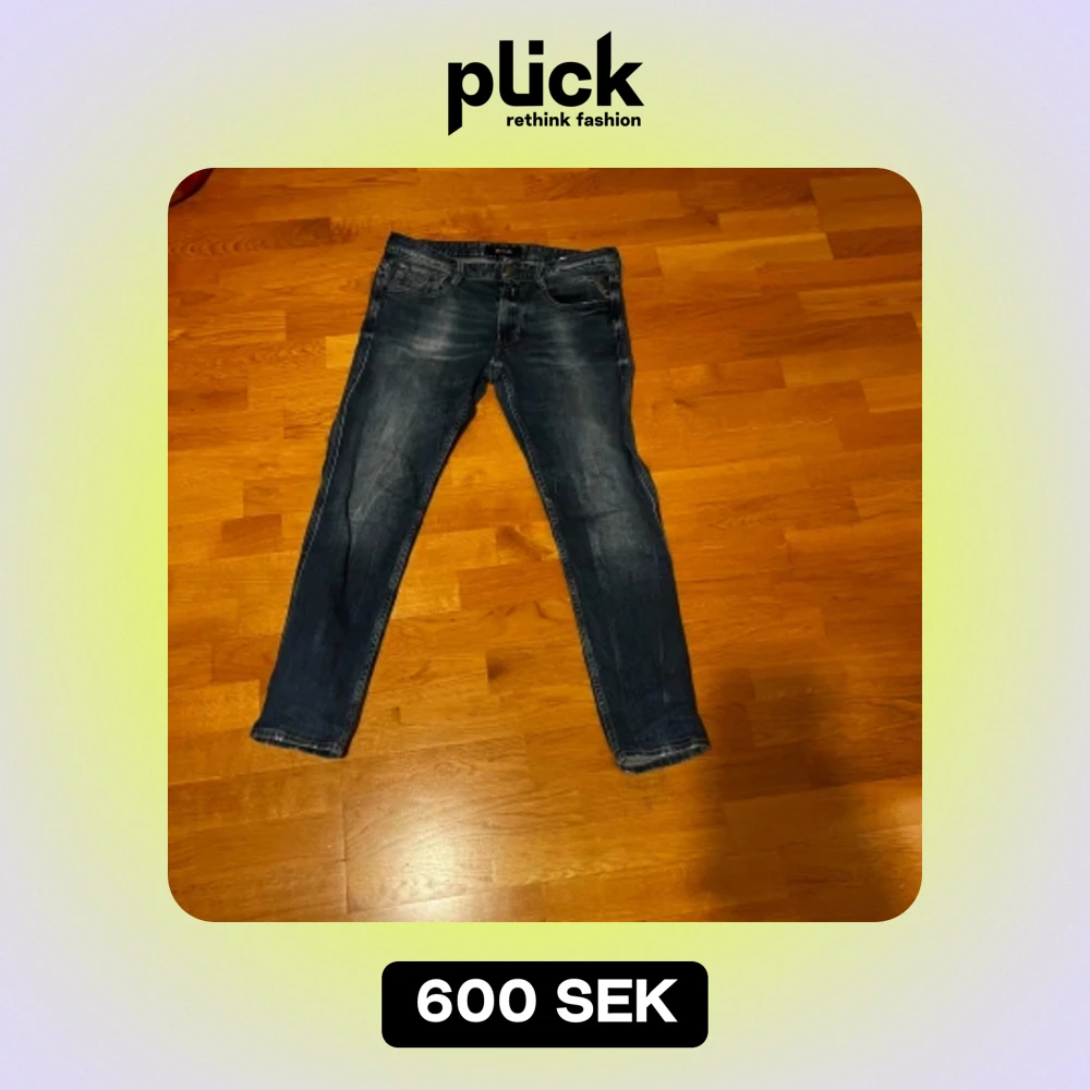 Säljer ett par snygga blå jeans från Replay. Jeansen är bra skick och riktigt feta. W32 L30