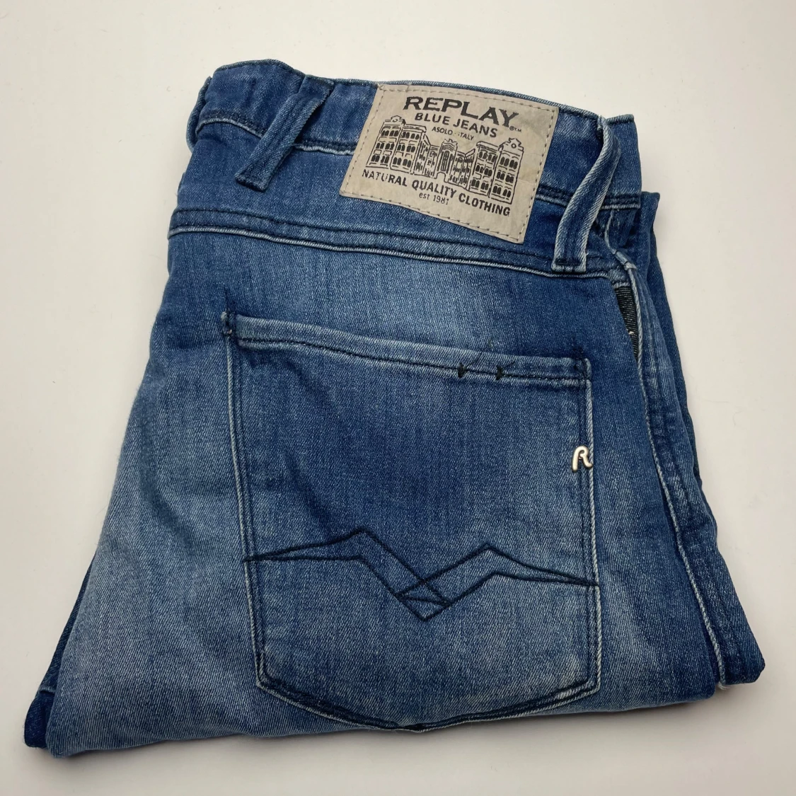 Snygga blå Replay Anbass jeans i slim fit med klassisk femficksdesign och coola detaljer på bakfickan. Jeansen har en mellanblå tvätt och är tillverkade i mjukt bomullsmaterial. Perfekta för dig som gillar en smalare passform och stilren look.