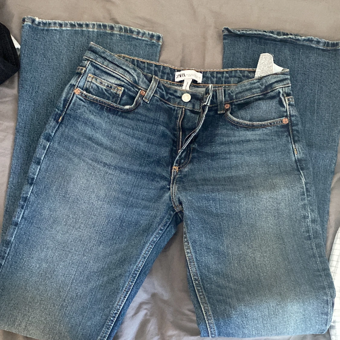 Säljer min systers nästan helt nya zara jeans då dom inte passar henne, använda 3 gånger så väldigt bra skick! Säljs inte längre och väldigt populära, lågmidjade och bootcut, bara att skriva vid funderingar!🫶🫶