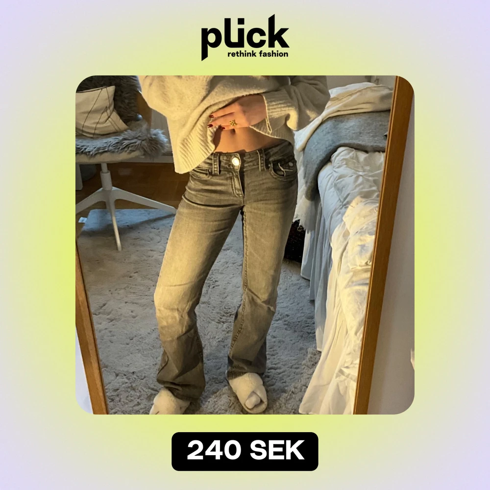 Säljer ett par snygga grå bootcut jeans i mycket bra skick. De har en klassisk femficksdesign med knappar och dragkedja fram. Är i storlek 158 men passar mig som vanliga fall har 32/34 eller xs/s. Perfekta för nu i vinter!❤️