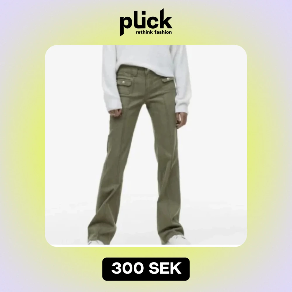 Säljer ett par gröna jeans från hm. De är endast testade. Helt slutsålda. Storlek 40 men passar perfekt på mig som brukar ha 38.
