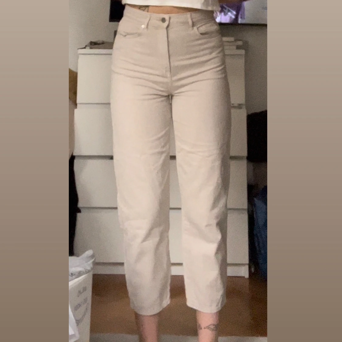 Så sköna mom jeans som är perfekta till vår och sommar då de är ganska tunna och korta! Jag är 175 för referens. Skriv för mer info (bilder/mått osv) 🫶🏼