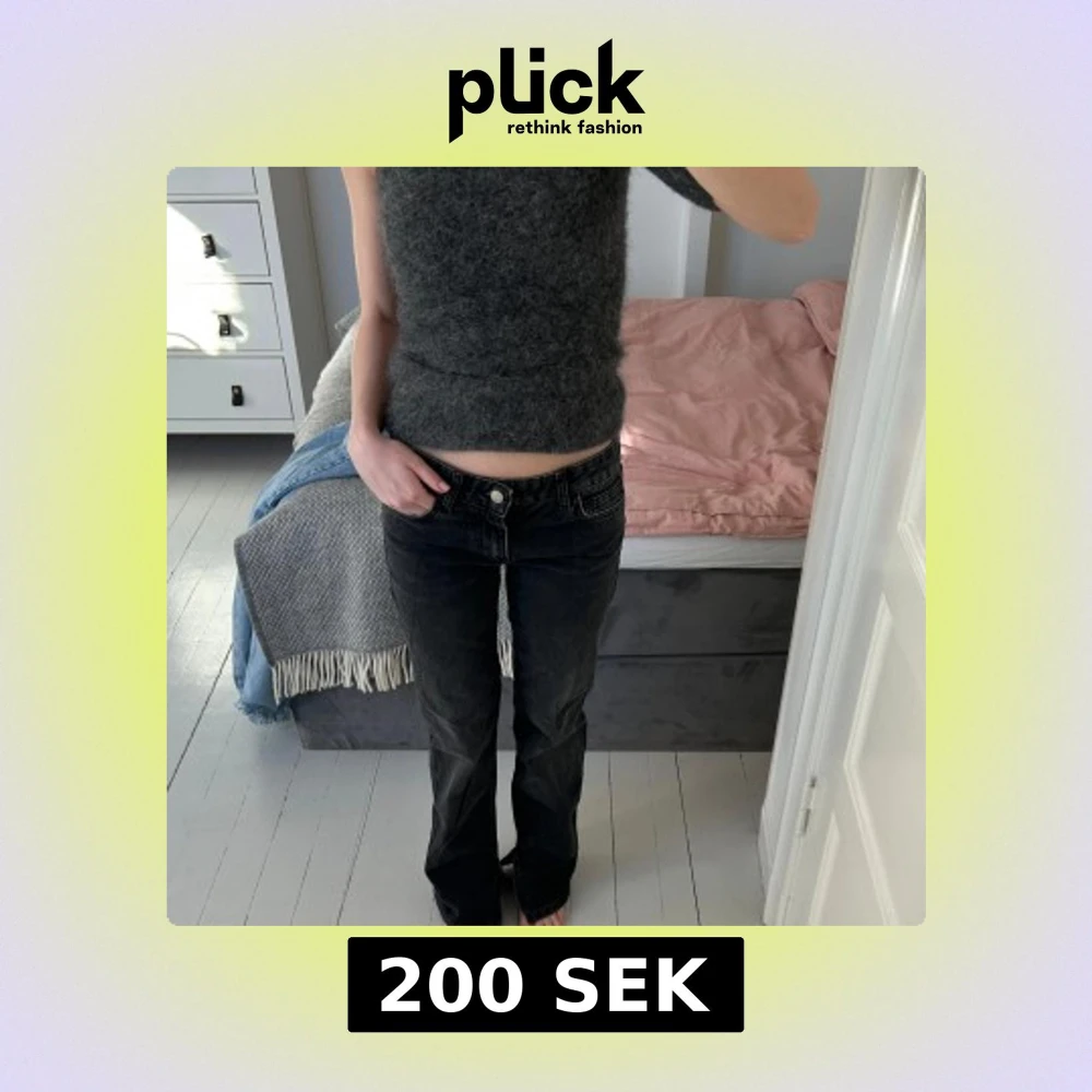Säljer lågmidjade full length zara jeans i storlek 32, jag har klipt en slits längst ner på både benen.