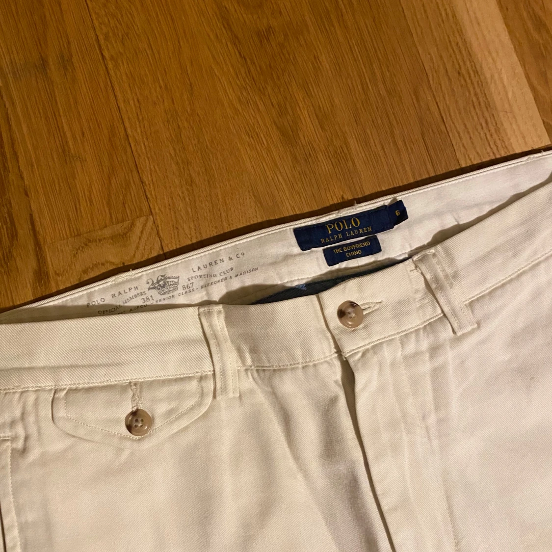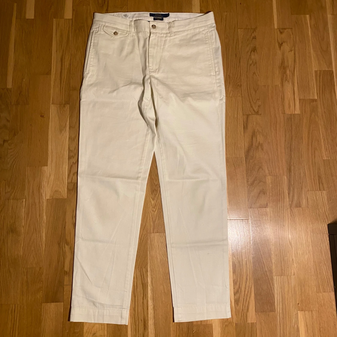 Säljer ett par vita chinos från Polo Ralph Lauren i modellen The Boyfriend Chino. Byxorna har raka ben, klassiska fickor fram och bak samt stängs med knapp och dragkedja. Tillverkade i mjuk bomullstwill. Ifall mer frågor skriv gärna! Mvh