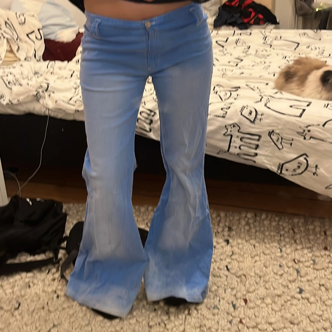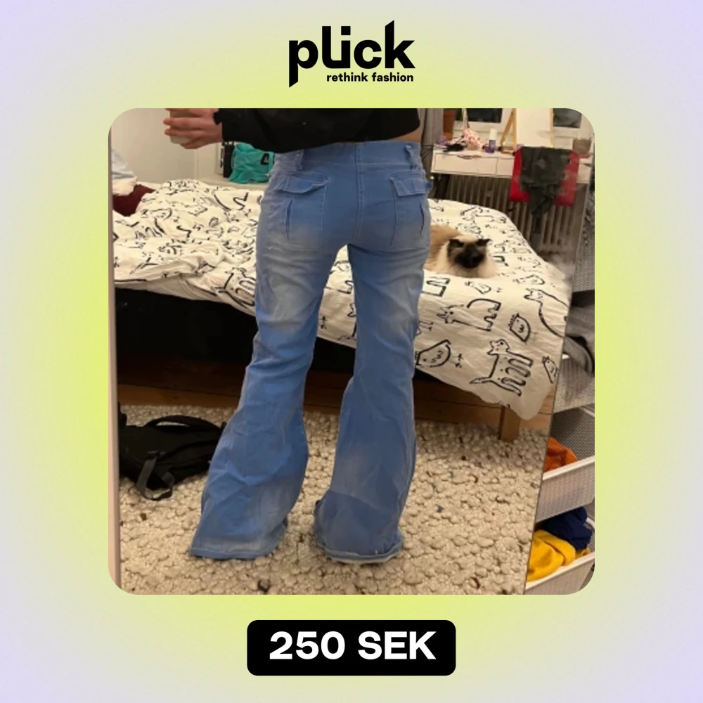 Lågmidjade flare jeans med nice bakfickor! Innerbenslängd: 83cm Midja: 36cm (mätt rakt över) Använt endast en gång!