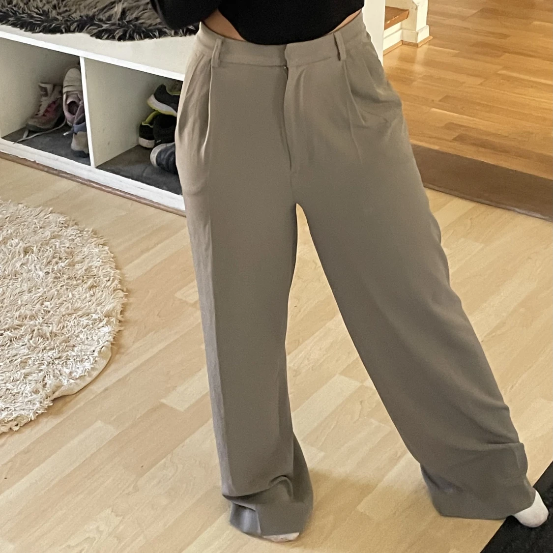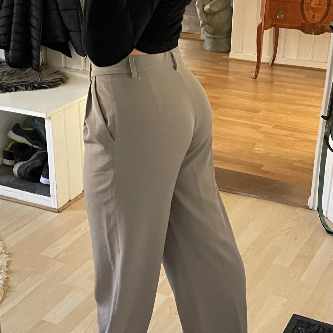 Kostymbyxor stl 38 i grå/mörkbeige, inhandlade för drygt ett år sedan. Sitter tyvärr inte som jag hade önskat, men skitsnygga! Passar dig som är en lång 36a skulle jag tro. För referens är jag 159 ;) Kom med prisförslag, billigare vid snabb affär ;)