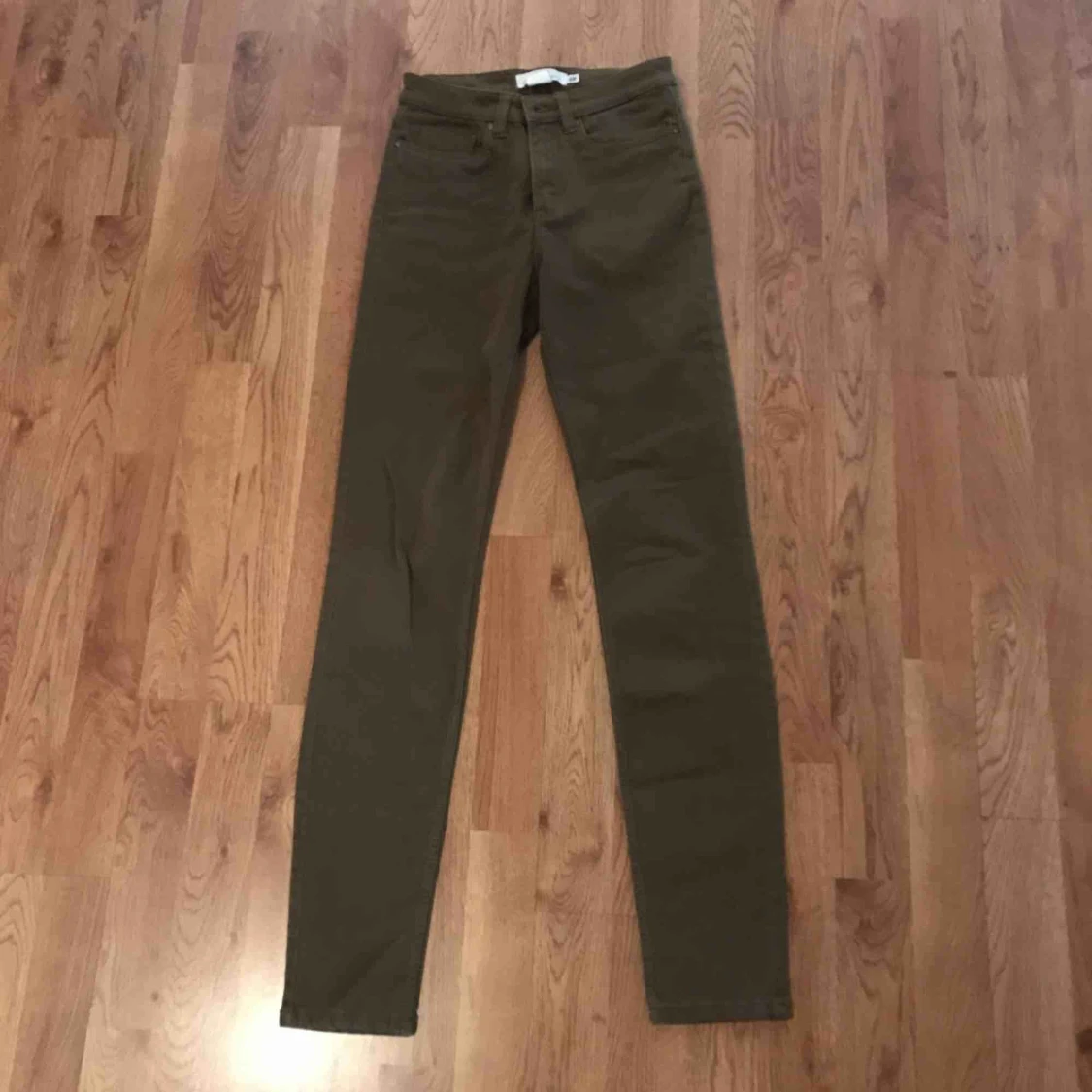 Mörkgröna byxor i mjukt jeansmaterial. Supersköna i vardagen. Säljer dem på grund av att storleken inte passar längre. Använda endast ett fåtal gånger. Byxorna är i normalt begagnat skick.