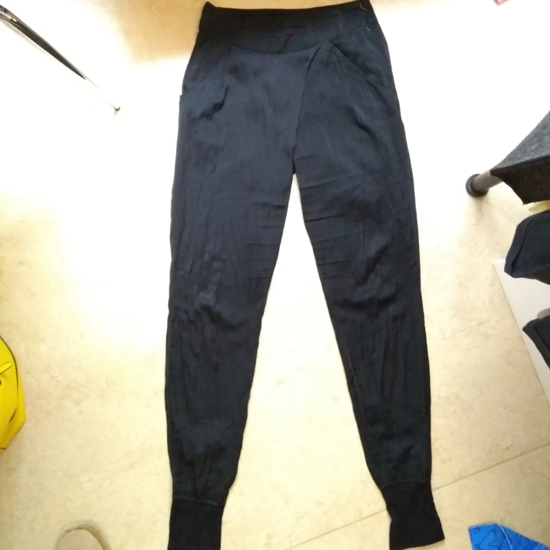 storlek S, köpta på Kappahl. mudd längst ned, dragkedja i sidan. glansigt tyg, sidofickor.