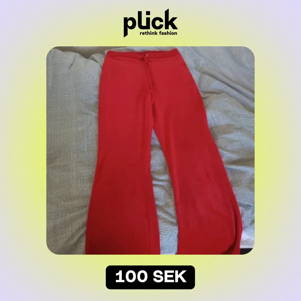 Säljer ett par röda velour byxor i strl S från LINDEX. Dem är mörkare röd i verkligheten än på bilderna! Använda en gång. Helt nya. Jätte sköna och jätte mjuka! Säljer dem för 100kr + frakt!