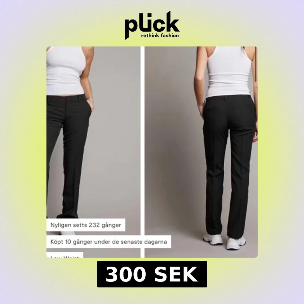 Snygga svarta kostymbyxor med låg midja och rak passform. Perfekta för en stilren look. Byxorna har en klassisk design med knappar och dragkedja framtill.