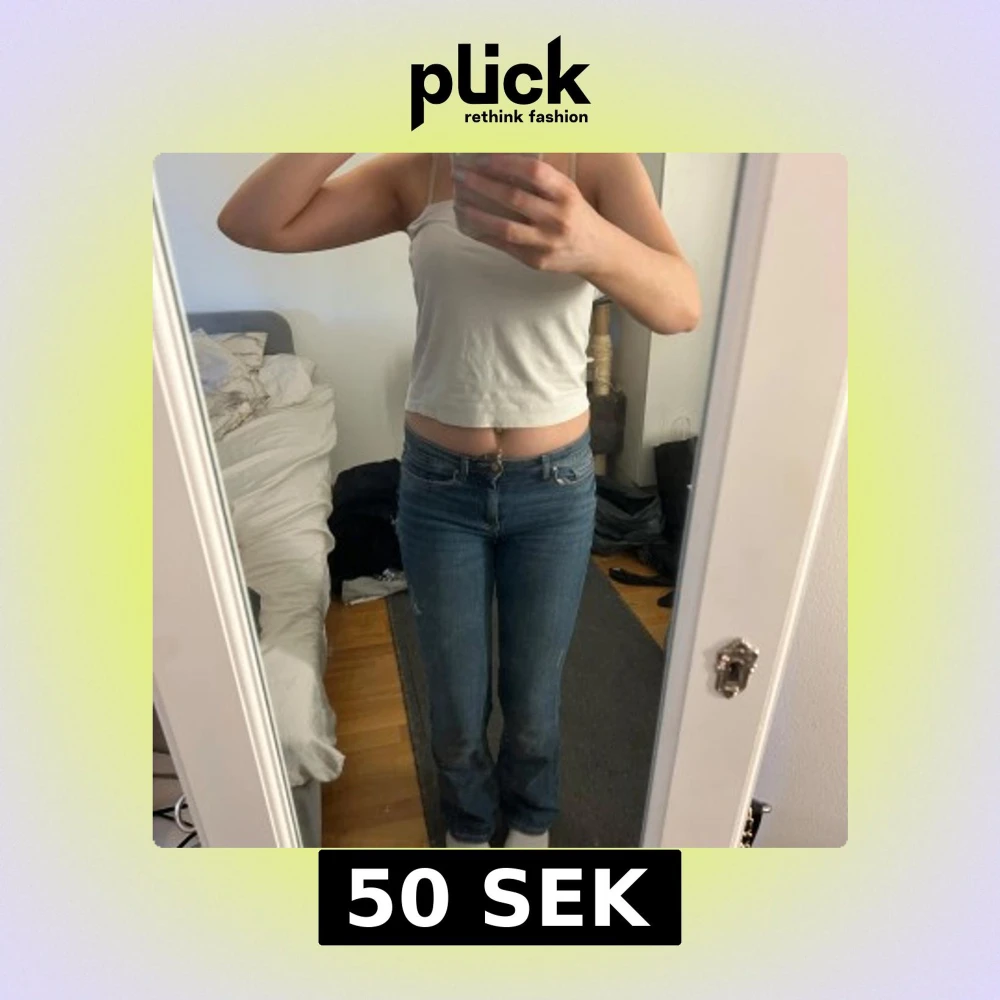 Snygga blå jeans med bootcut-stil och låg midja. Perfekta för en avslappnad look. Klassisk design med fem fickor och dragkedja.