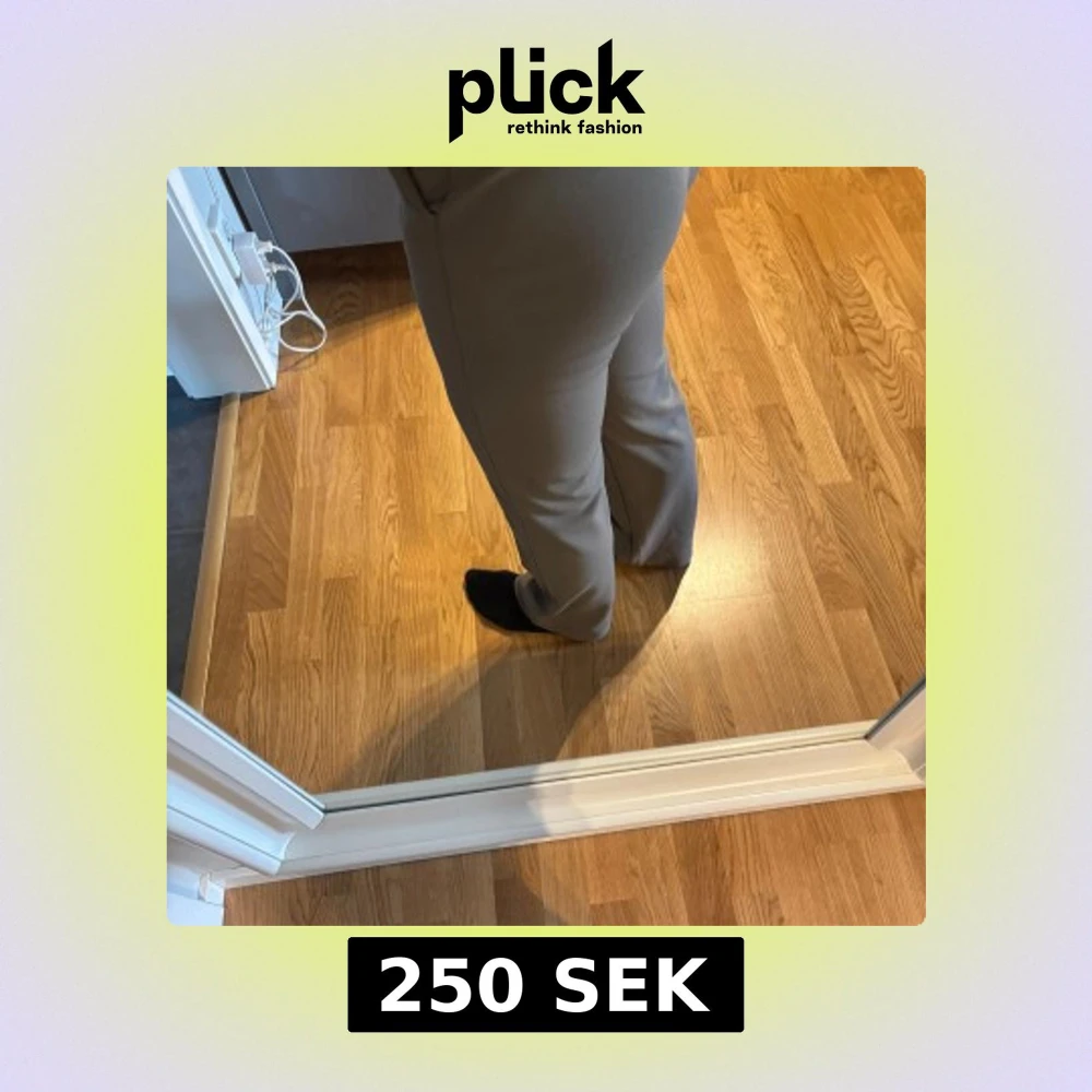 Snygga gråa kostymbyxor med hög midja och raka ben. Byxorna har pressveck och stängs med dragkedja och knapp framtill. Perfekta att matcha med många olika färger. Liten mörk fläck på vänster lår men annars som oanvända. Midjemått: 72 cm Innerbenslängd: 74 cm! 💞 Jag är 1,58 m lång och de passar mig bra i längden! Pris går att diskutera! 💞