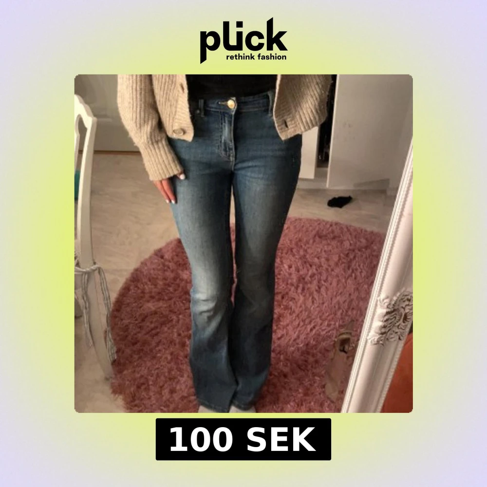 Snygga blå jeans med bootcut-modell och mid waist midja. Storlek M, men tycker snarare S!