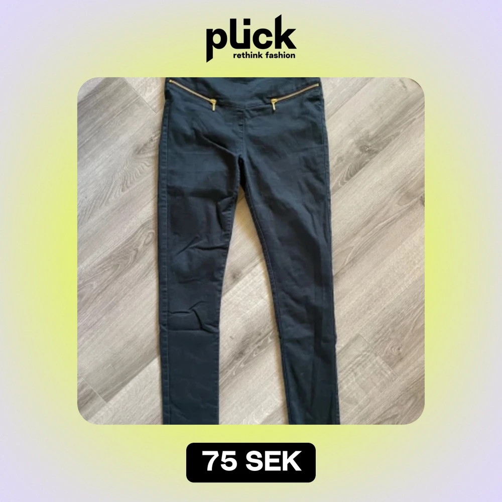 Svarta raka jeans med dragkedja där bak Höga i midjan Två falska fickor med dragkedja fram Hela och rena