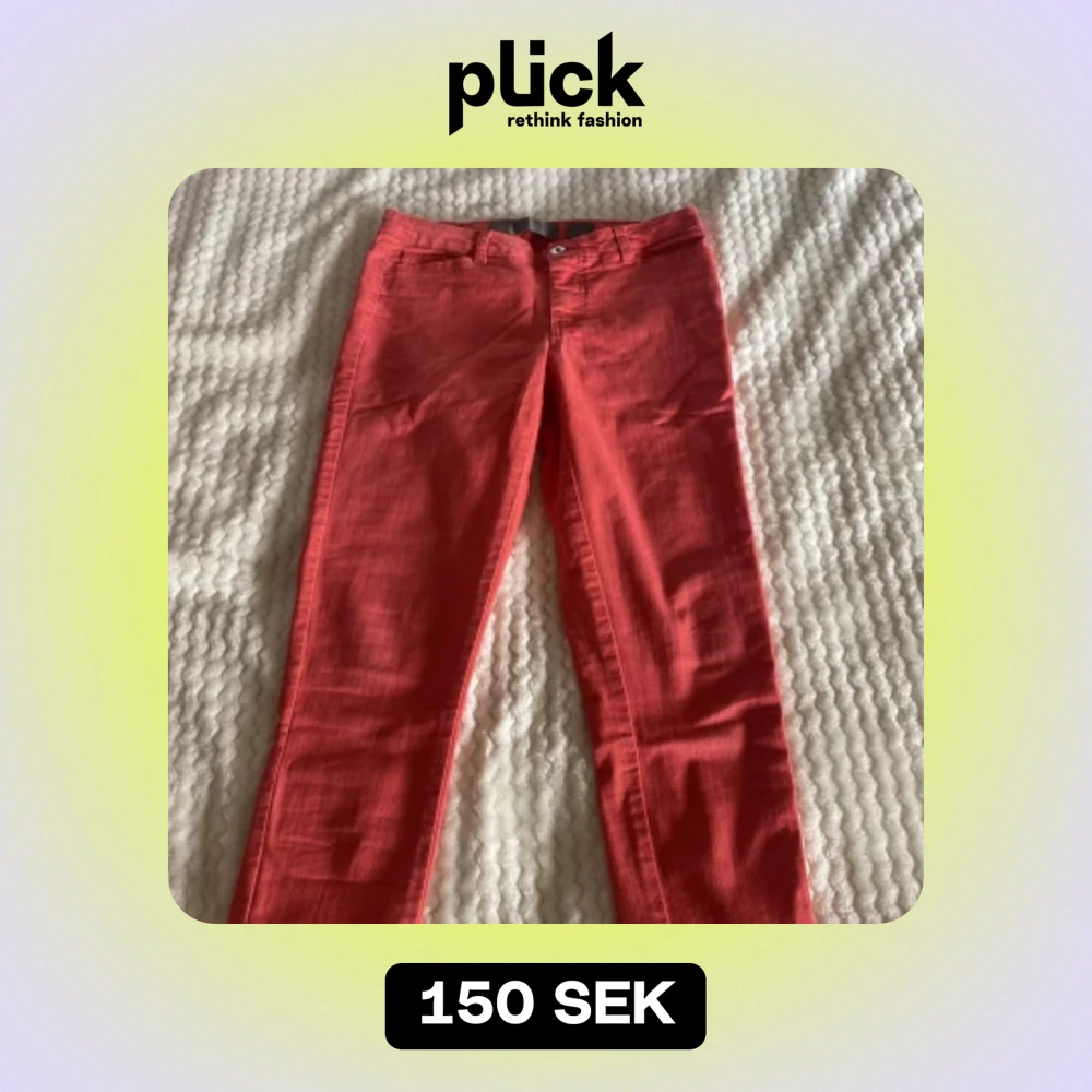 Säljer ett par snygga röda jeans från Vero Moda. De har en klassisk design med knappar och dragkedja framtill. Perfekta för att liva upp garderoben med lite färg!