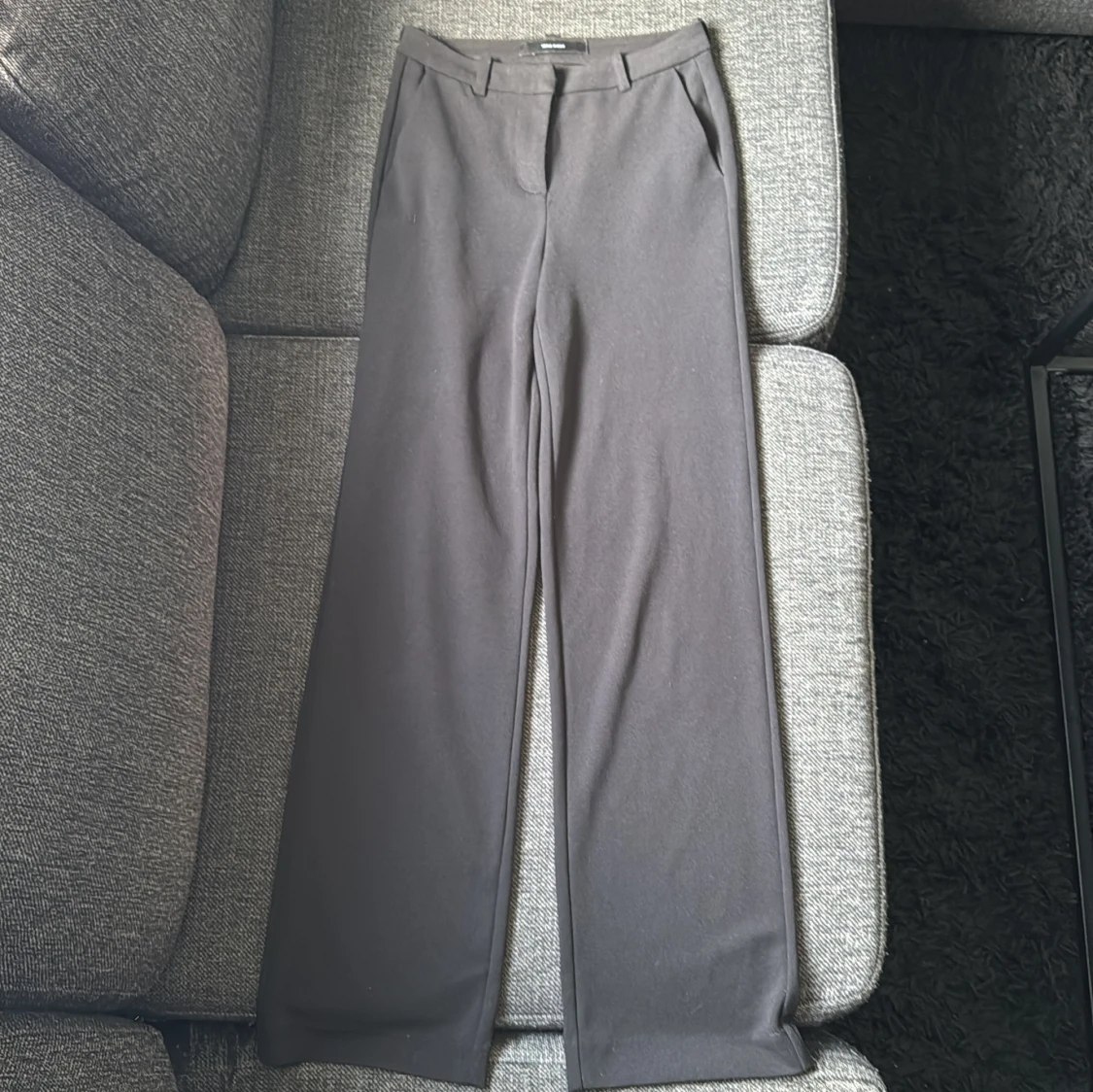 Svarta kostymbyxor från Vero Moda i storlek XS/32. Byxorna har medel/hög midja, vida ben och fickor framtill. Materialet är ej som ”vanliga” kostymbyxor utan mer bekvämt material.