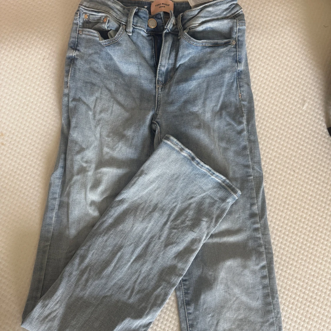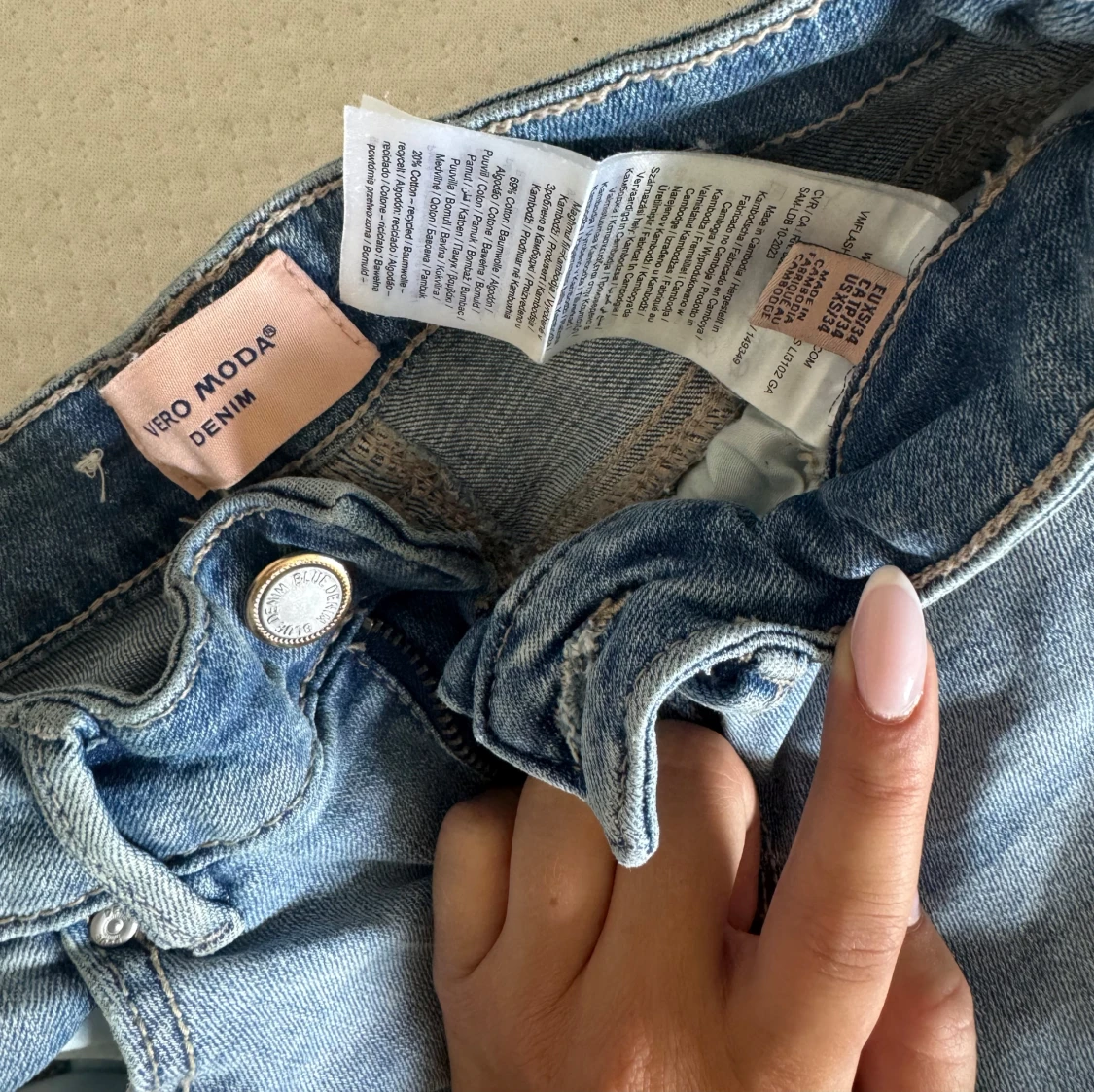Snygga ljusblå jeans från Vero Moda med klassisk femficksdesign och raka ben. Jeansen har normal midja och är tillverkade i mjuk bomullsdenim med mycket stretch. Storlek XS längd 34