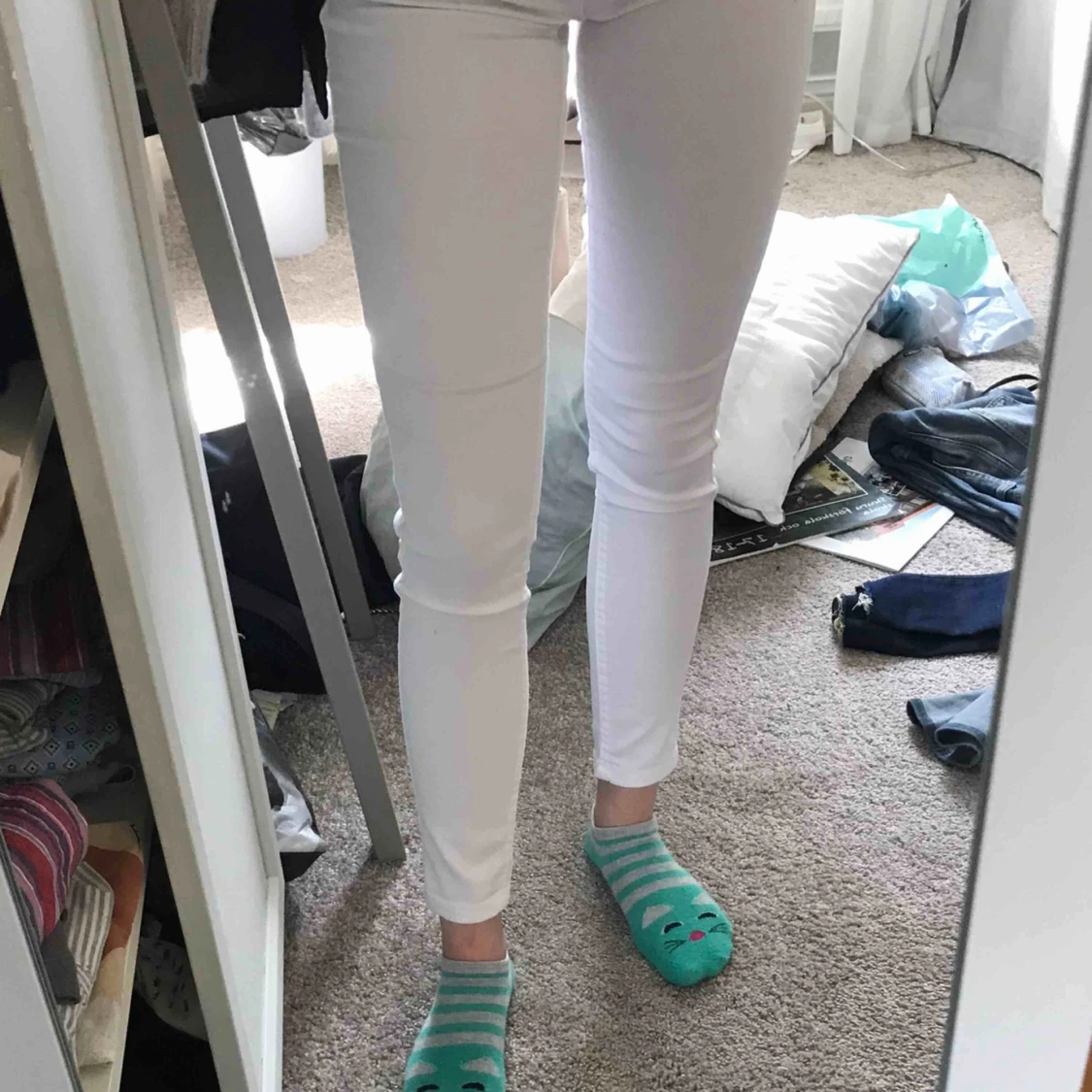 Ett par vita jeans från vero Moda. De är otroligt sköna och bekväma. De är i storlek S men skulle säga att de passar 25/26 i midjan och 30/32 i längd. Möts upp i stockholm eller fraktar (köparen står för frakt)