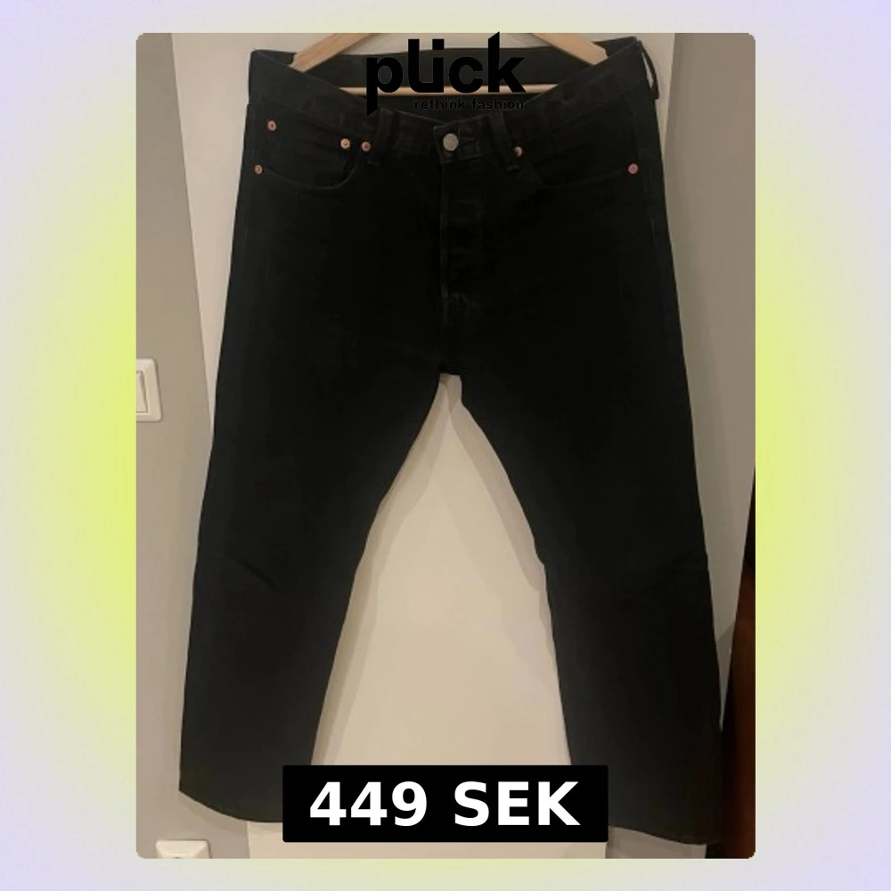 Klassiska svarta Levi's 501 jeans med rak passform och knappgylf. Jeansen har fem fickor, ikonisk röd Levi's-tag på bakfickan och är tillverkade i slitstark bomullsdenim. Perfekta för en clean och tidlös look. Hör av er vid minsta fråga 🤗🤗
