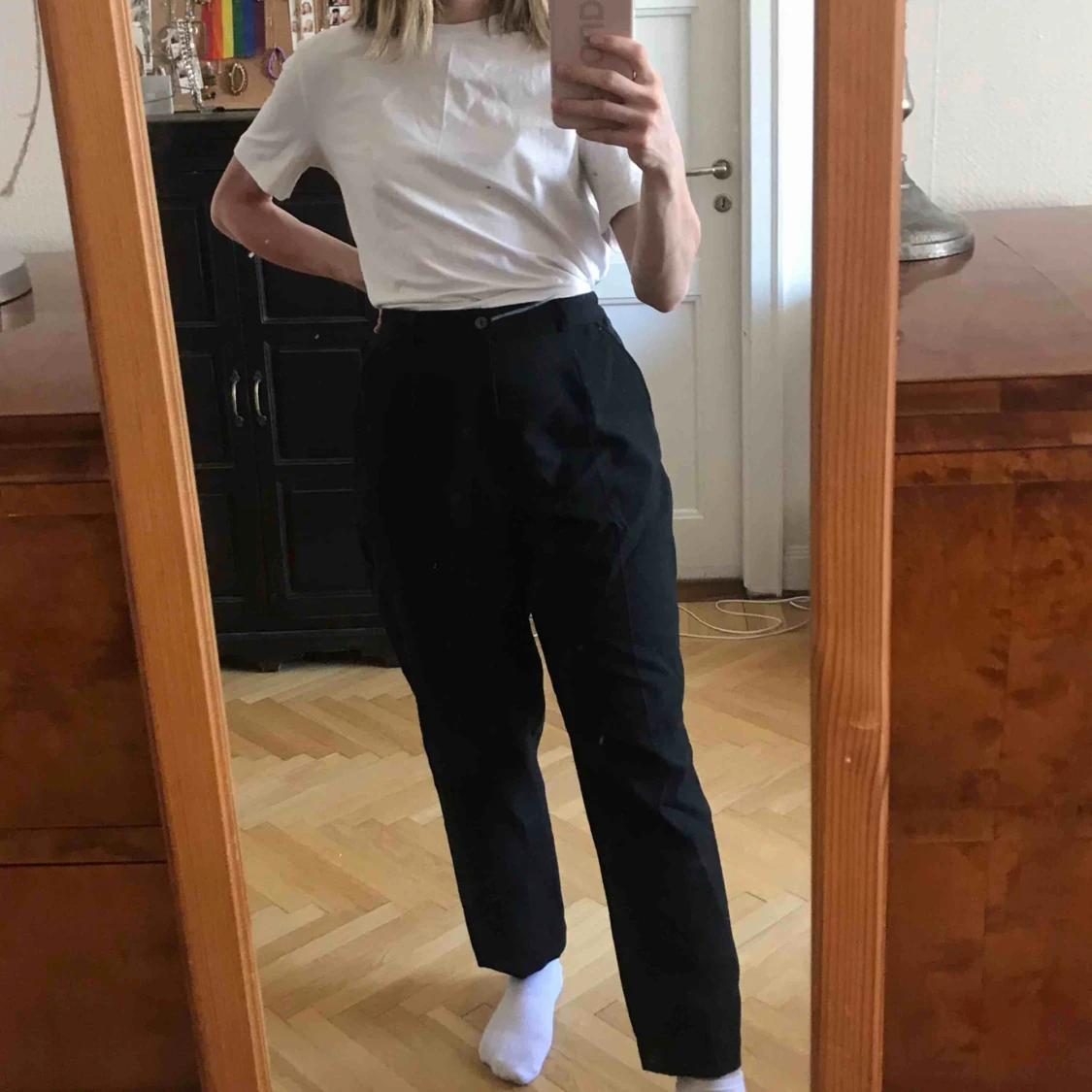 Raka kostymbyxor med stretchiga midja så kan passa flera storlekar 25/26- kanske 28 Köparen står för frakten men kan även mötas upp (i Stockholm)