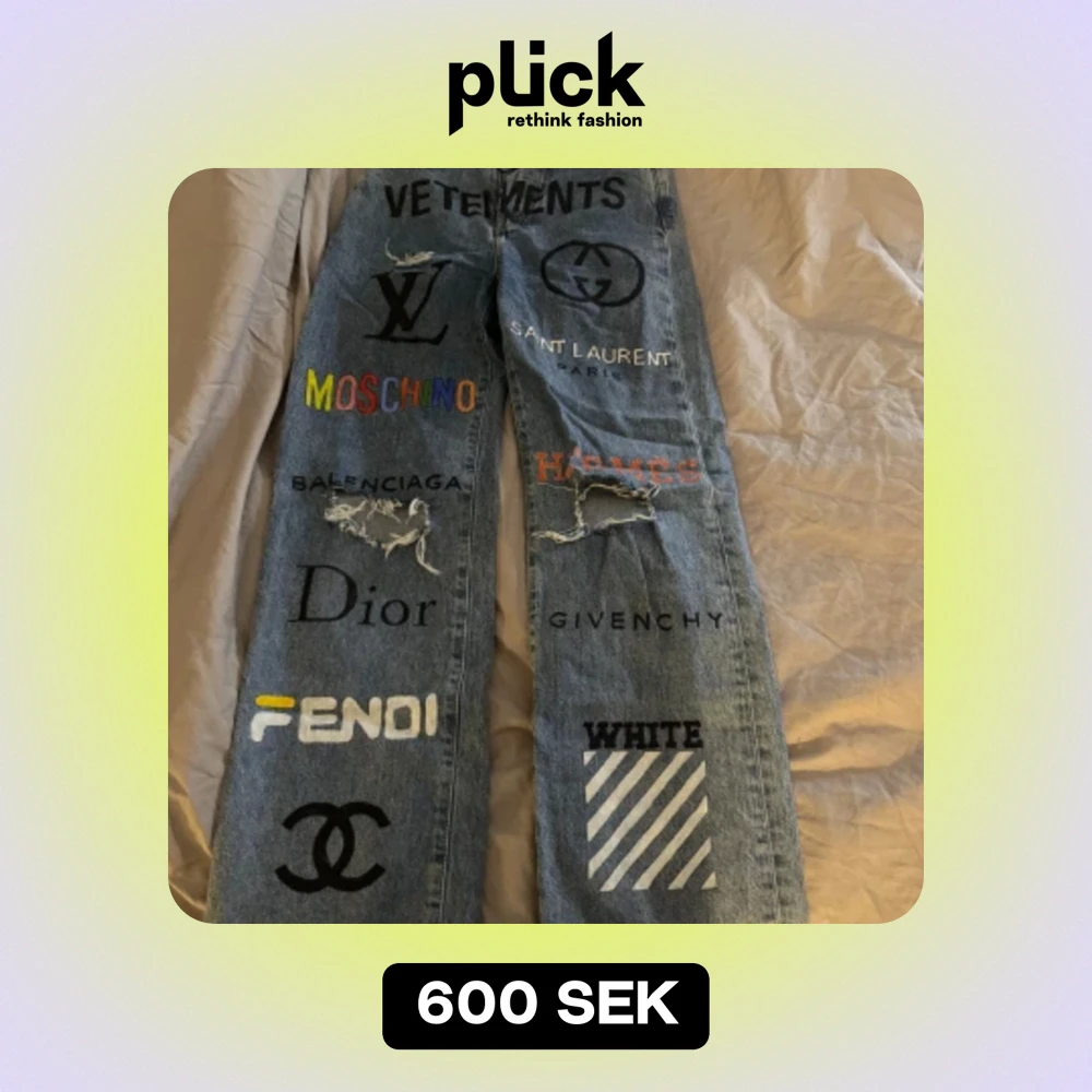 Målade utsvängda jeans i storlek 25, jeansen klarar av tvätt utan problem. Jeansen är från bikbok