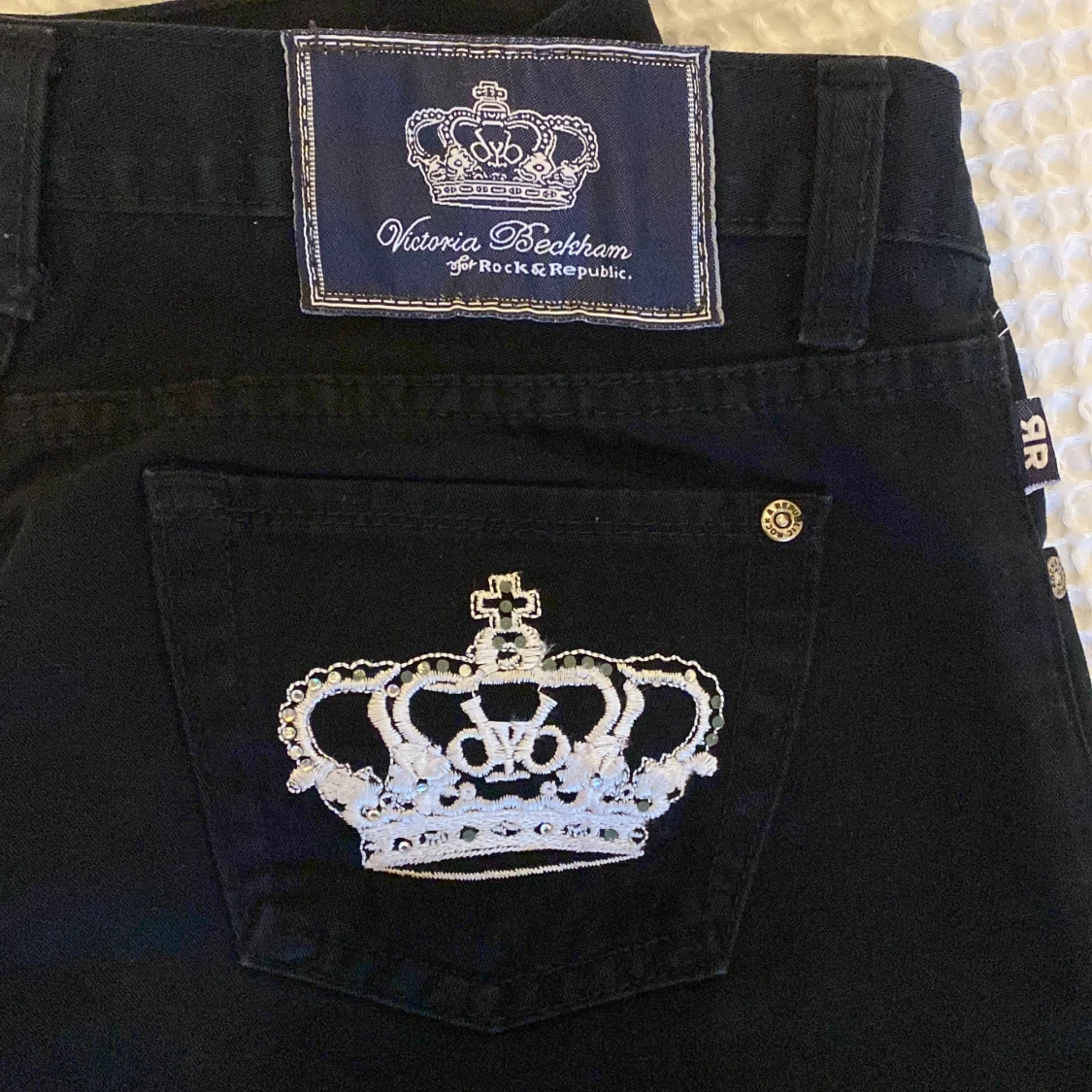 Svarta lågmidjade Victoria Beckham bootcut-jeans! Insydda svagt i benen, står inte storlek men passar 38/m. Midjemått 38 cm (tvärs över). Saknar tyvärr några stenar på bakfickorna annars väldigt bra skick!