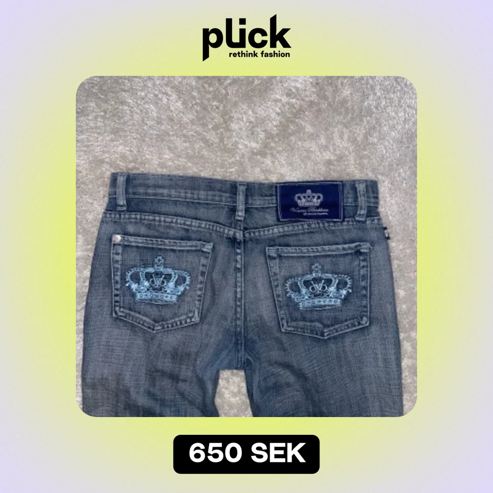 Säljer nu dessa sjukt snygga jeans då de inte kommer till användning! De är i ganska bra skick, några stenar på bakfickan saknas dock. Storleken står inte men måtten är W40cm L76cm. Skriv vid frågor!💕Använd gärna köp nu! Åker bort 11/6-14/6
