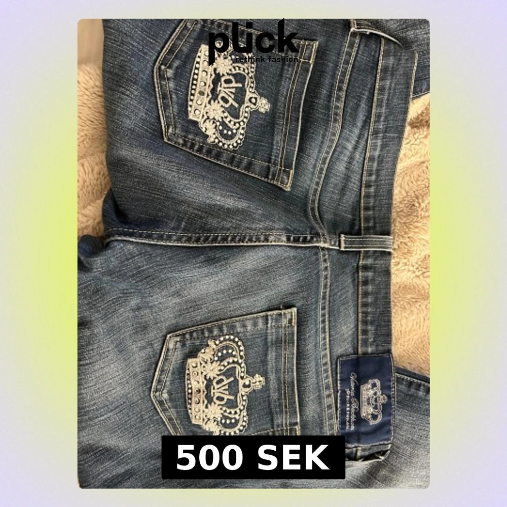 En paljett sten är borta, man kan se det på en bild, annars är alla kvar Jag är 162 och dem är lite långa för mig. Säljer dem för att dem är förstora. Aldrig använd dem. Midjemått rakt över 39 cm. Innerbenslängd ca 76-77 cm. Straight fit skulle jag säga. Om man vill ha fler bilder är det bara att skriva💗💗pris går att diskutera💞
