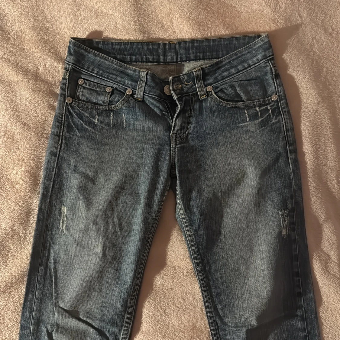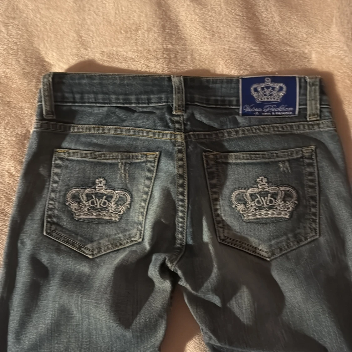 Snygga vintage lågmidjade jeans från Victoria Beckham med raka ben och coola slitdesigner! Snygga detaljerade bakfickor!! Perfekta att ha med ett par höga boots!🫶😍