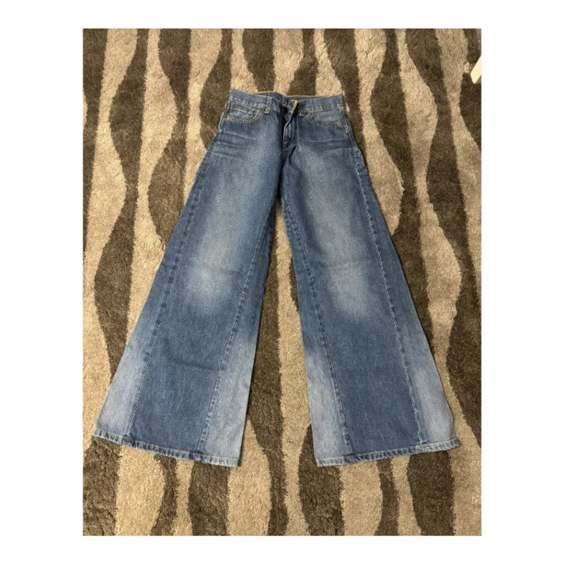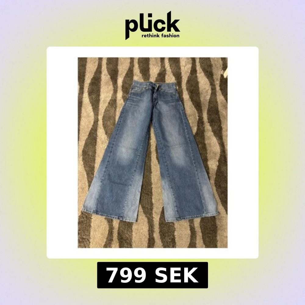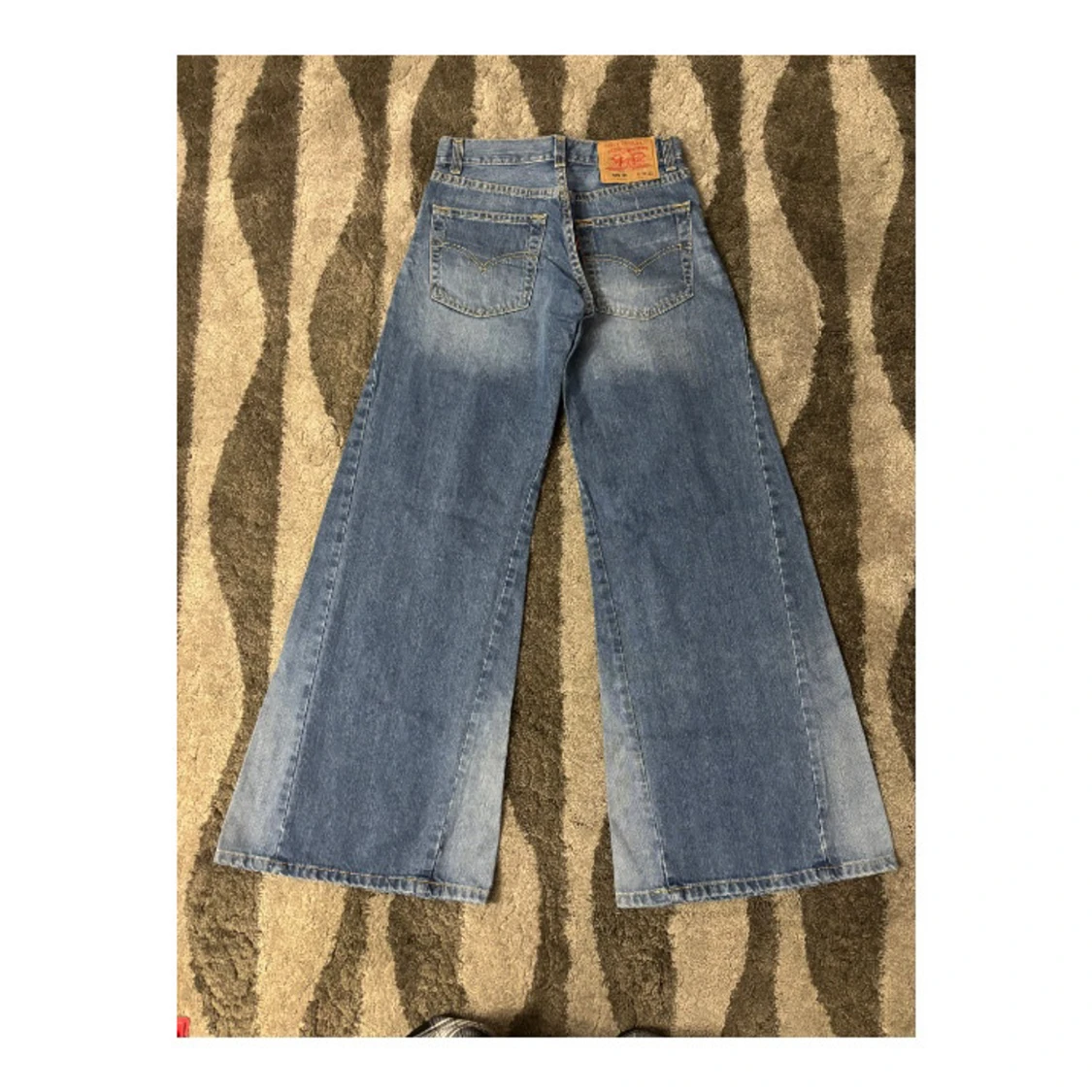 Blå Levi’s med vida ben, strl W26/L32. I fantastiskt skick, med undantag för att lite av sömmen sprättats upp vid gylfen (se tredje fotot) - går dock enkelt att fixa.