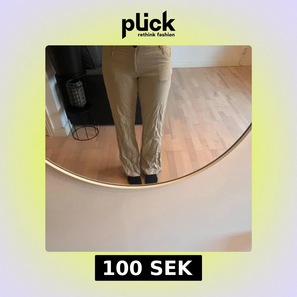 Snygga beige linnebyxor från Vila, storlek L men är på gränsen till försmå för mig och jag har S. Byxorna har knappar och dragkedja framtill samt fickor både fram och bak.