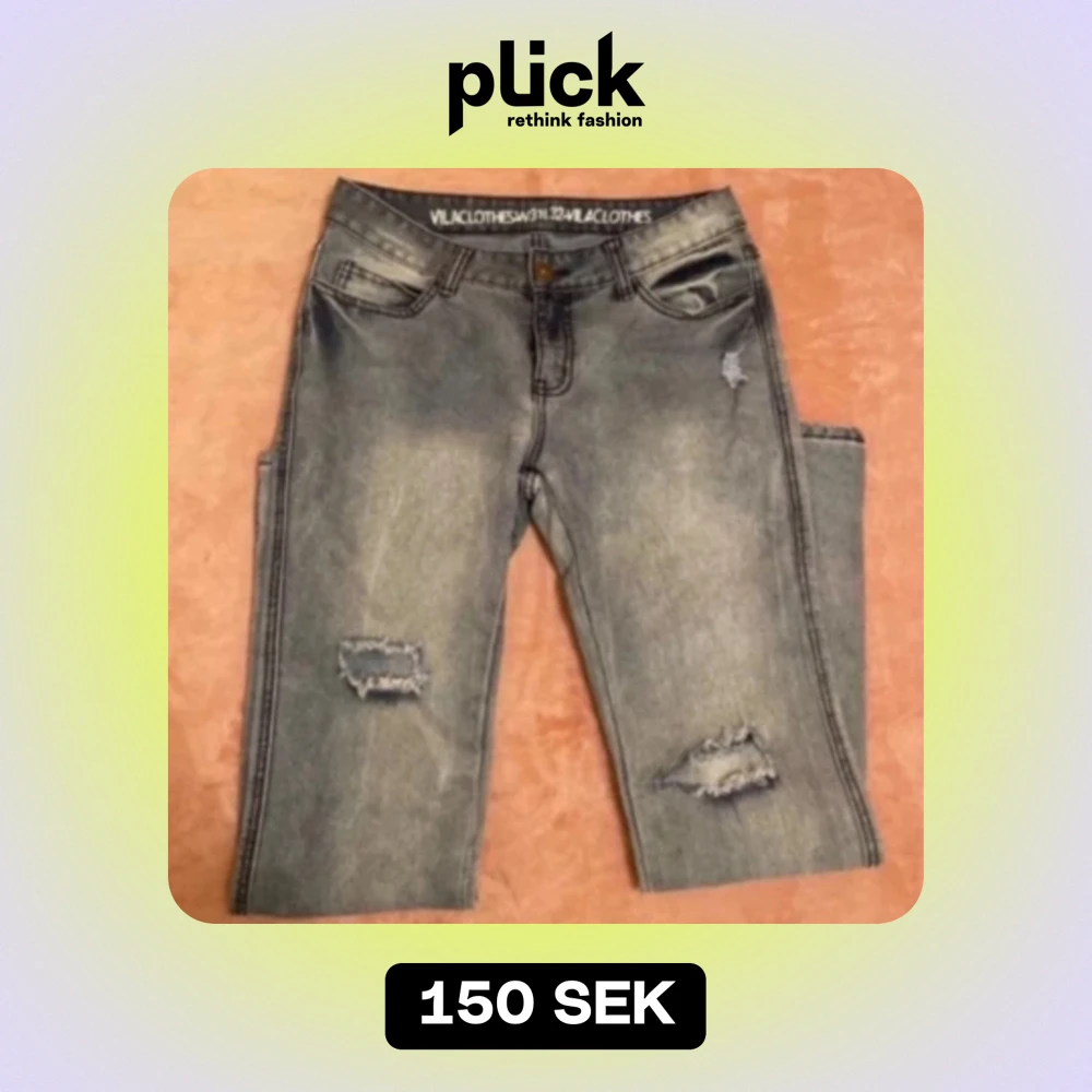 Raka jeans med hål vid knäna,, är 163 och dom är långa på mig. W31L32 midwaist💕