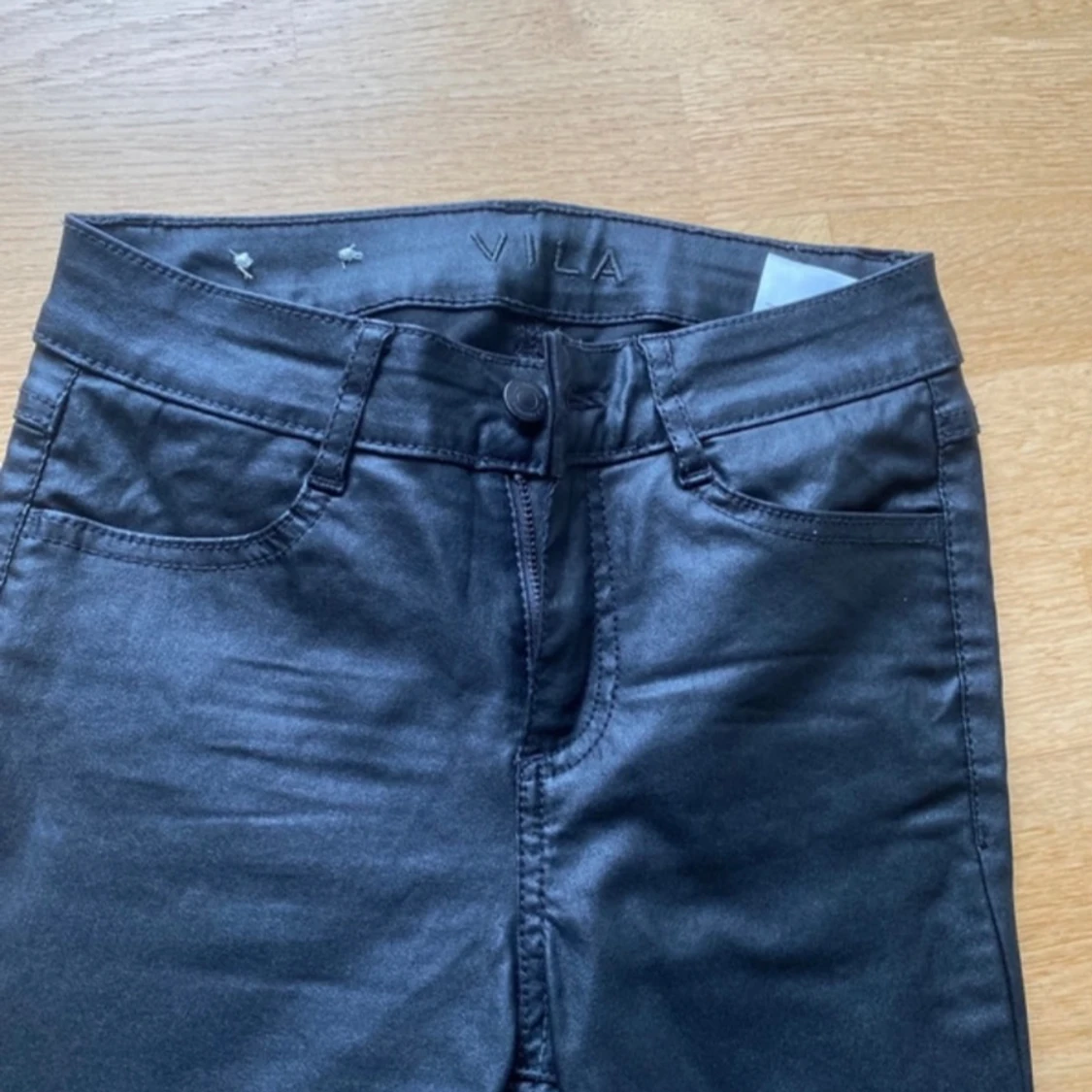 Svarta fejk skinn/läder byxor