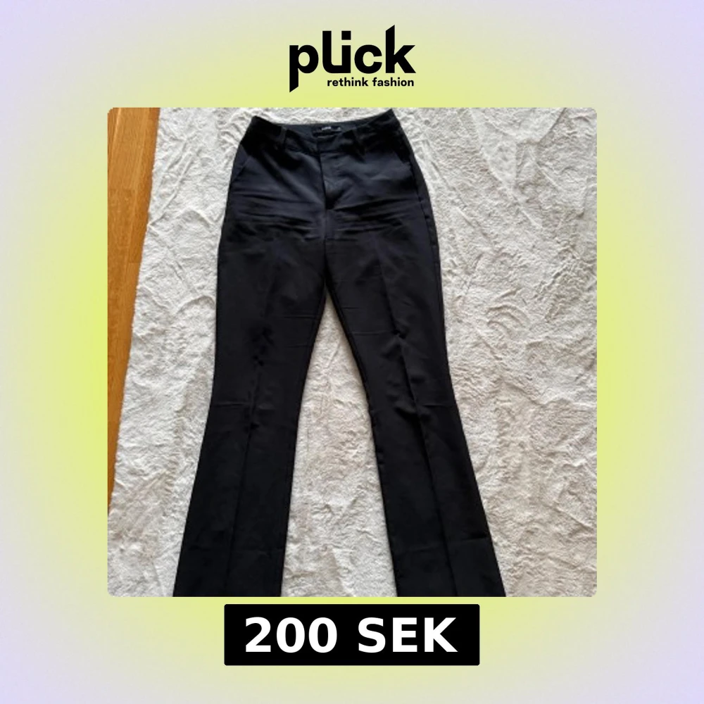 Säljer mina snygga svarta kostymbyxor från Bik Bok i storlek 36. Byxorna har bootcut-ben, medel hög midja och klassiska fickor bak. Materialet är mjukt och har en lätt stretch.