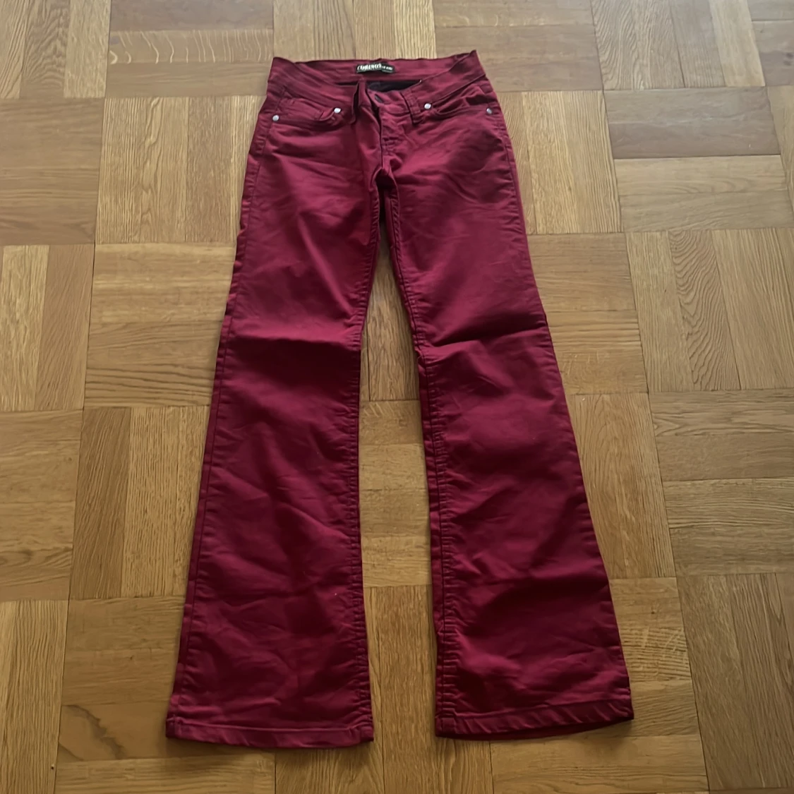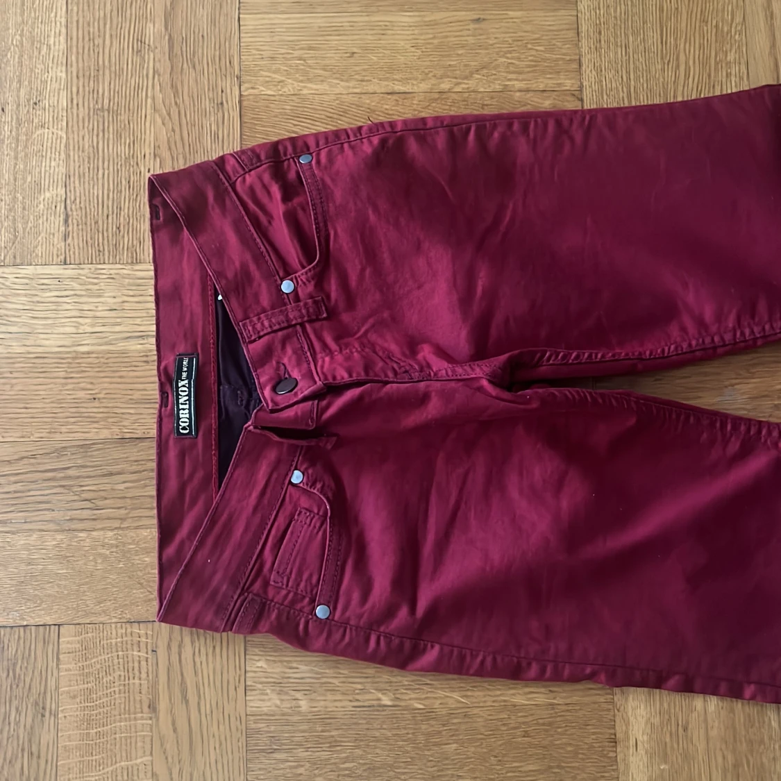 Snygga vinröda byxor från Coretnox med bootcut passform. Klassisk femficksmodell med silverfärgade nitar och knapp. Byxorna är tillverkade i ett mjukt bomullstyg och har normal midja. Perfekta för dig som vill sticka ut med färg.