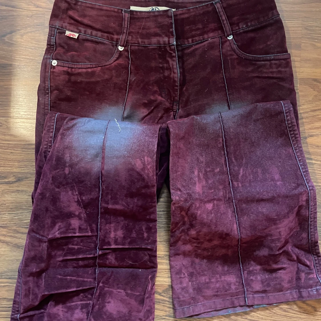 Säljer ett par vinröda manchesterbyxor från Diesel med femficksmodell och dragkedja. Byxorna har en unik tvätt med ljusare partier framtill och baktill, lågmidjade och bootcut