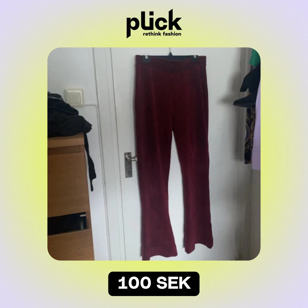 Ett par sköna vinröda manchesterbyxor som är utsvängda längst ner