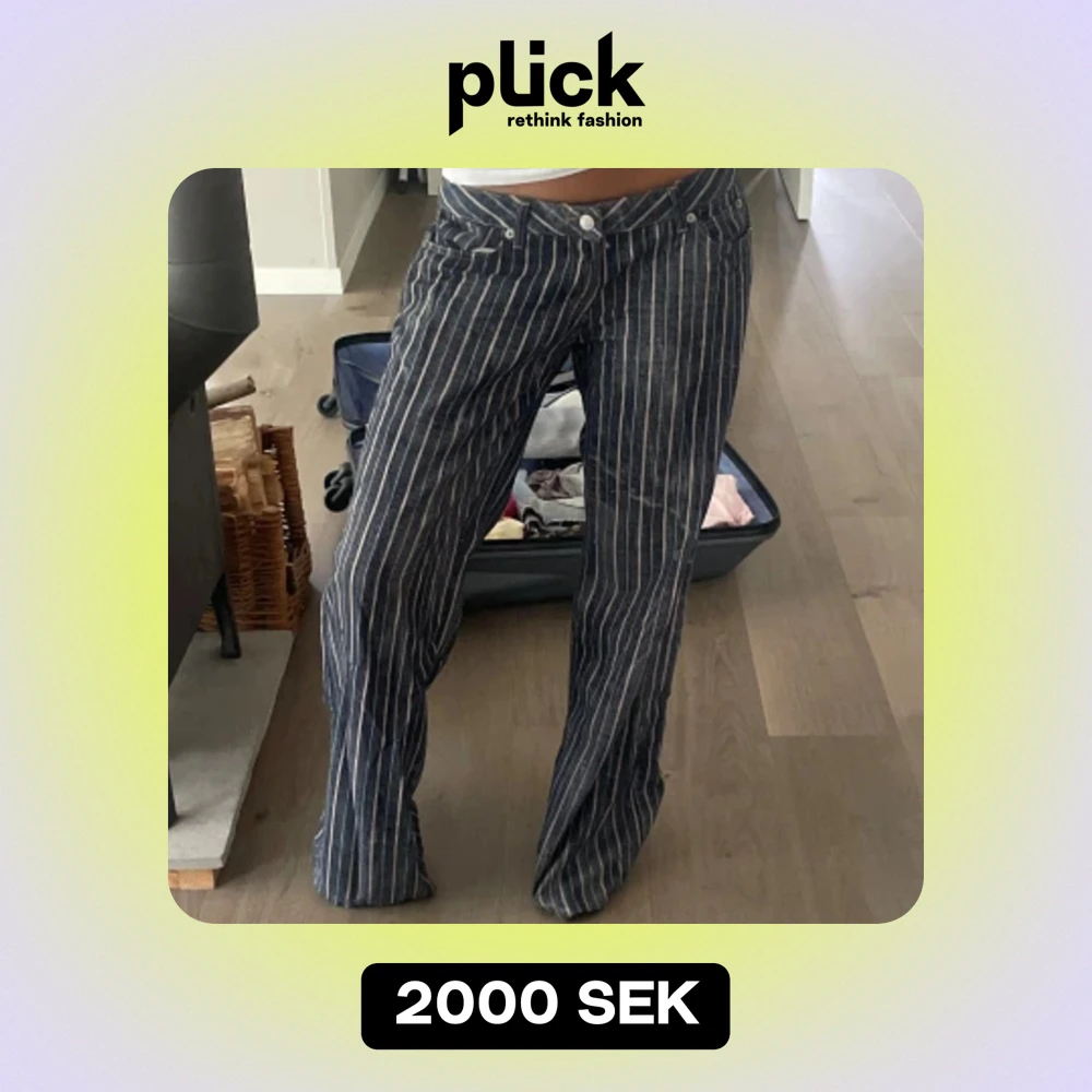 ENDAST INTRESSEKOLL!!!! Såå coola randiga linnebyxor i den perkfekta modellen! Lågmidjade, vida ben. Storlek s-m beroende på hur man vill att det ska sitta. Midjemått 38 innebenslängd 80 cm