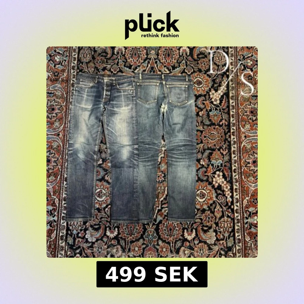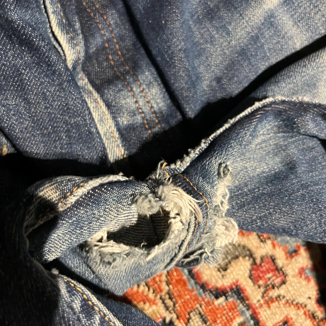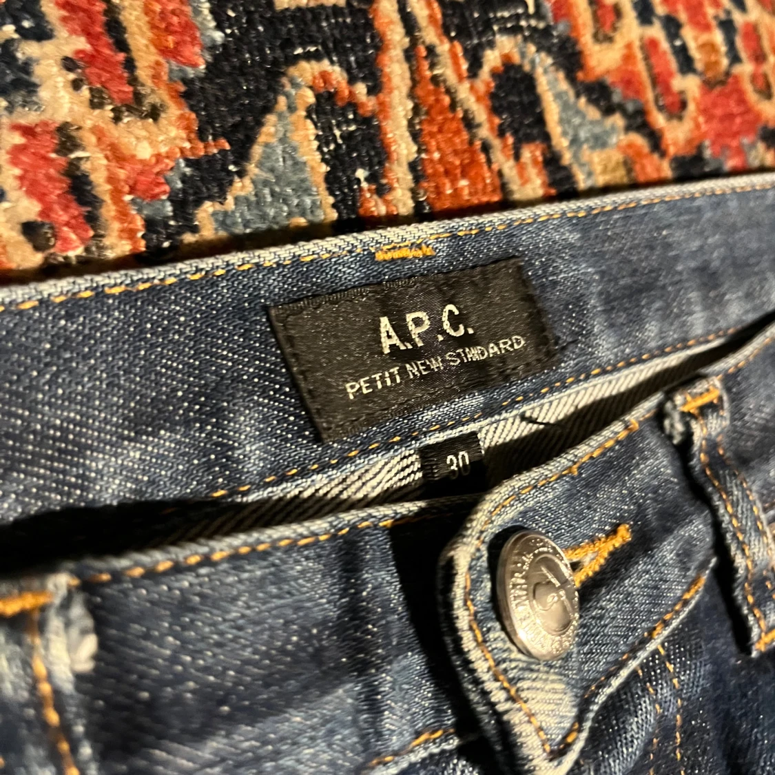 Riktigt snygga Apc jeans med en sjukt cool tvätt. De har tyvärr två små hål i skrevet. De syns inte när man har på dem men annars är de lätt att laga. Modellen är petit standard. Mått: Midja: 39,5cm Längd: 95cm Benöppning: 16,5cm