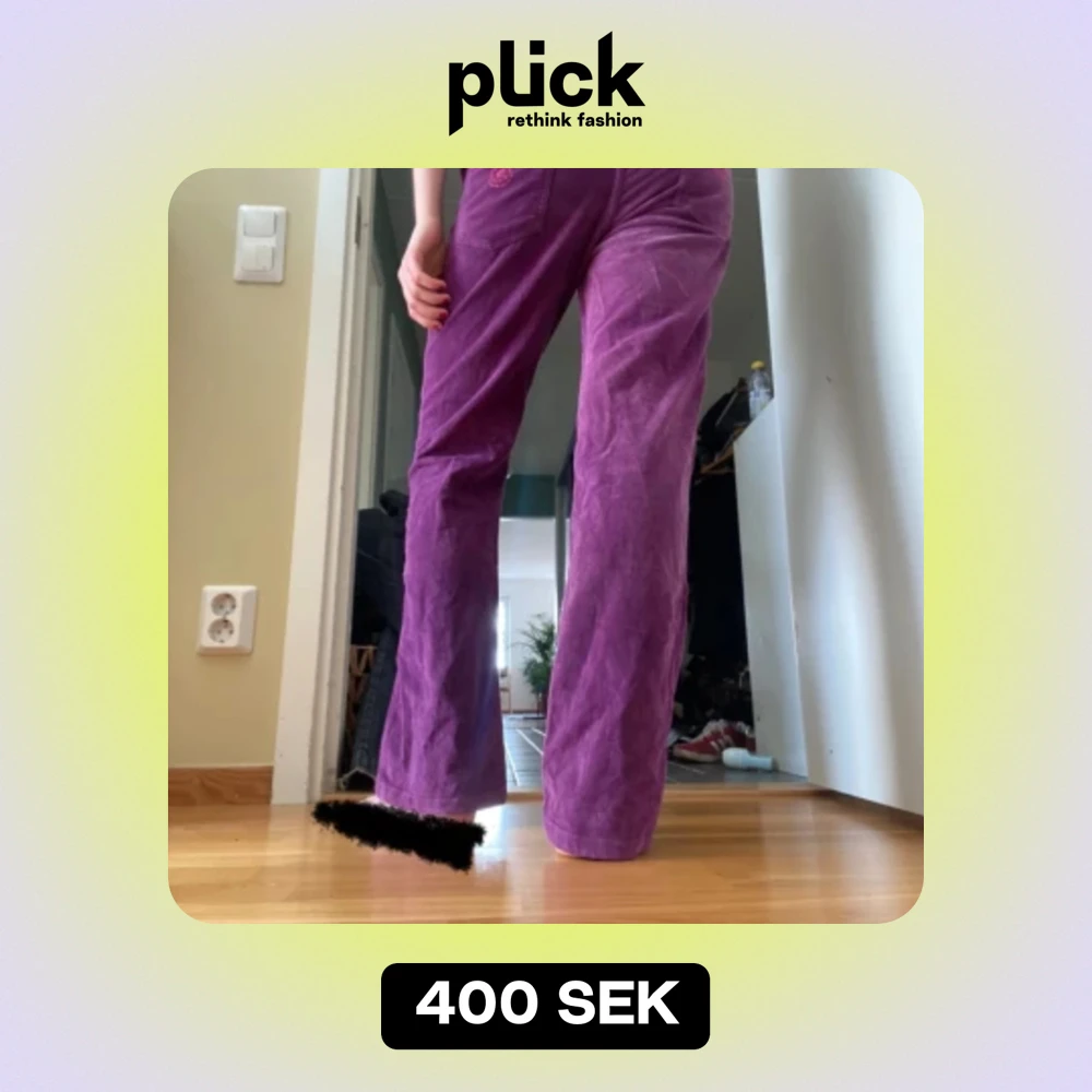 dösnygga lila lågmidjade byxor av mjukt tyg. Omsydda större i midjan, se bild nr.4. skulle säga s/m skriv för frågor:)