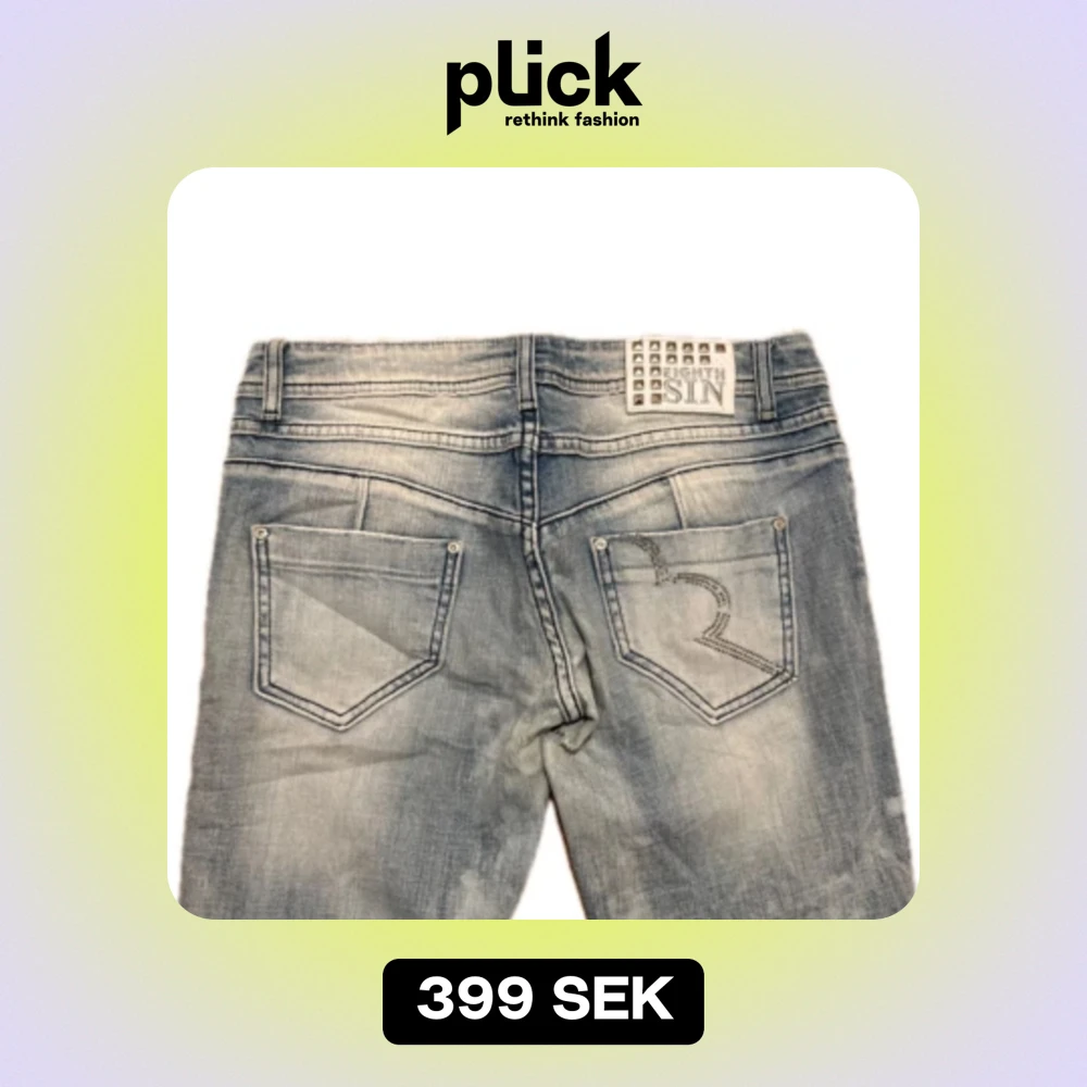 Vintage Eighth Sin Jeans! Är stretchiga, har dragkedjor längst ner på byxbenen som kan göra dom vidare och måtten är: Midja 39 cm Längd 96 cm Tveka inte att skriva vid ytterligare frågor!⭐️