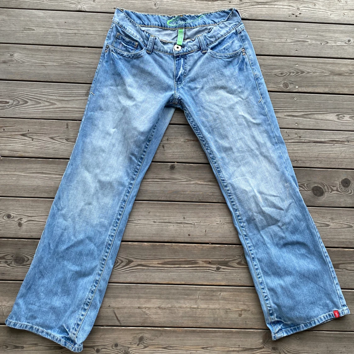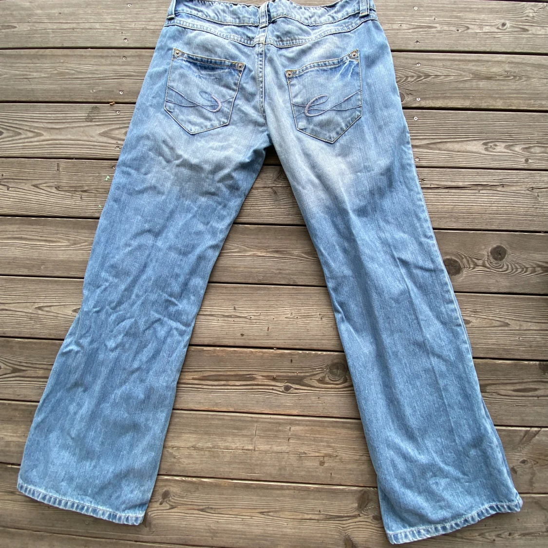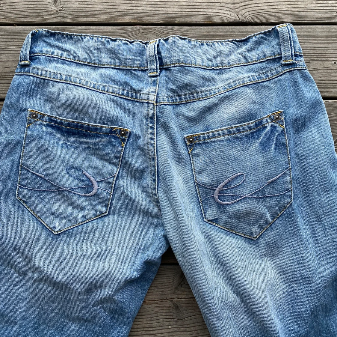 Jättefina lågmidjade esprit jeans i fint skick med unik brodering på fickorna. Storlek W30 så passar nog runt s/m.