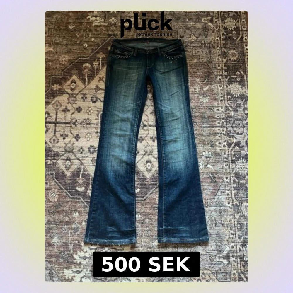 Snygga blå bootcut jeans. Jeansen har låg midja och klassisk femficksdesign. Innerbenslängd: 84 cm midja: 38 cm midjehöjd: 18 cm