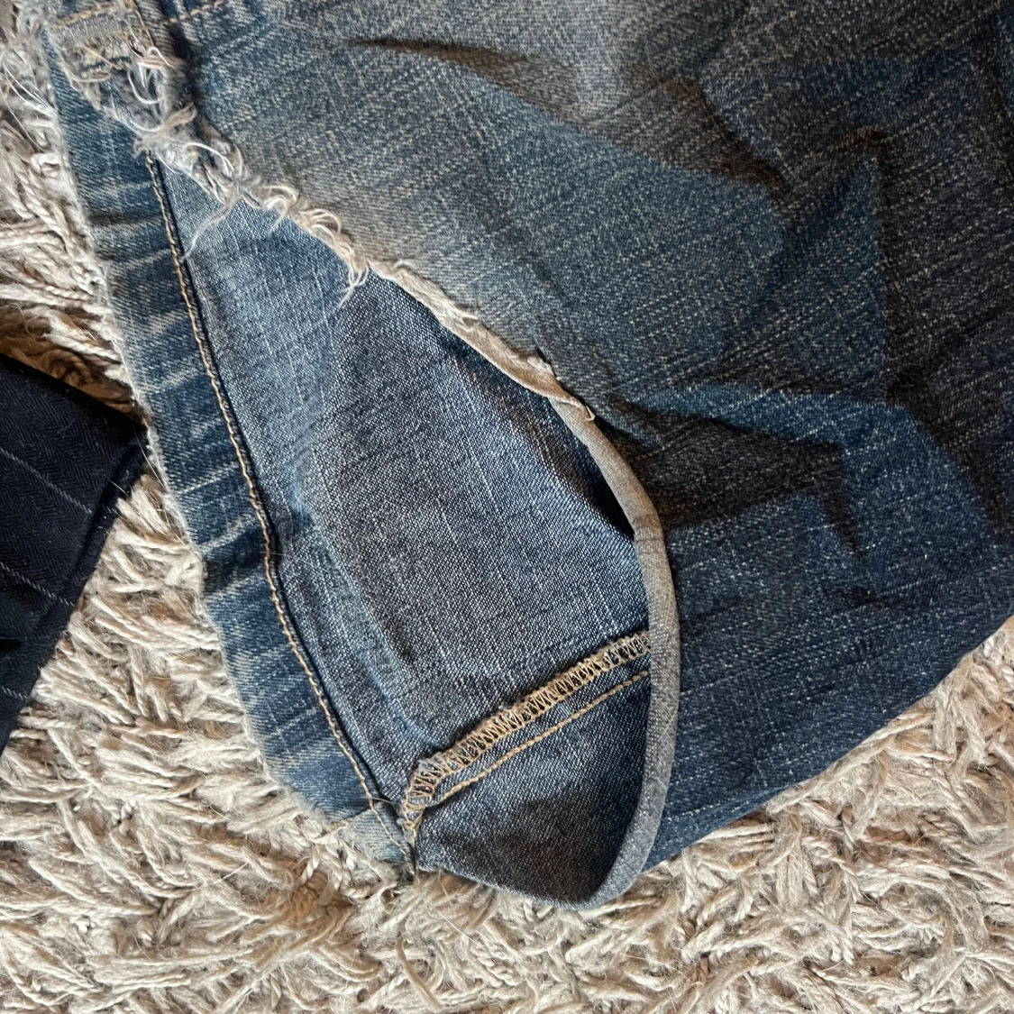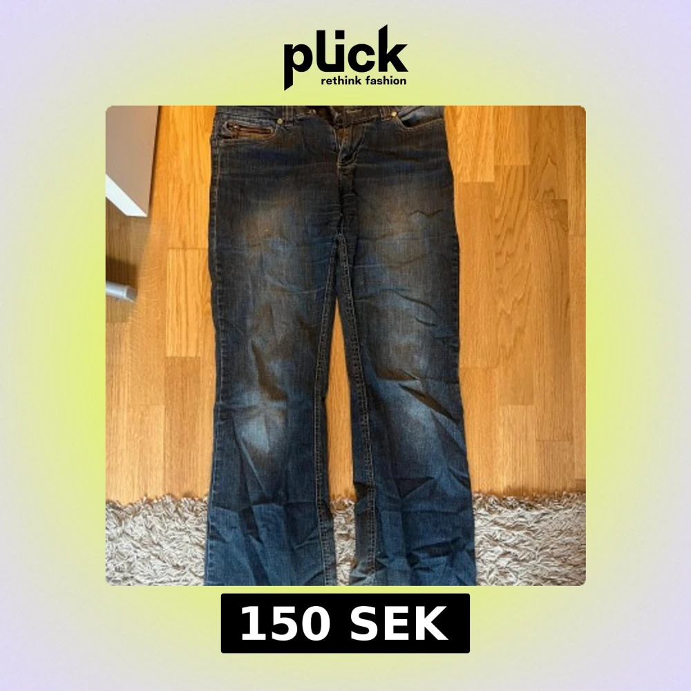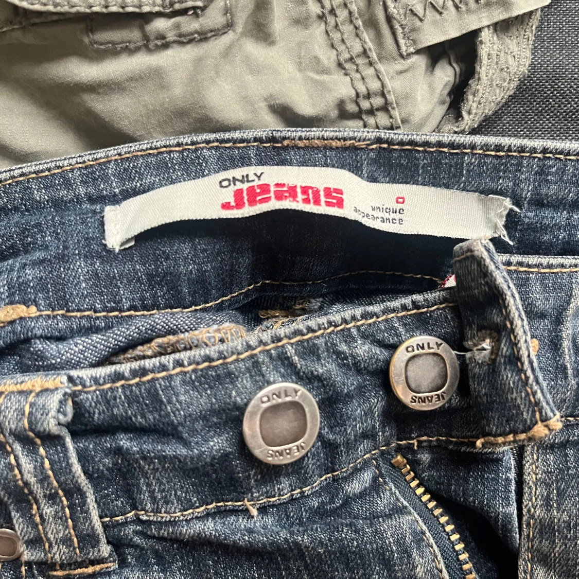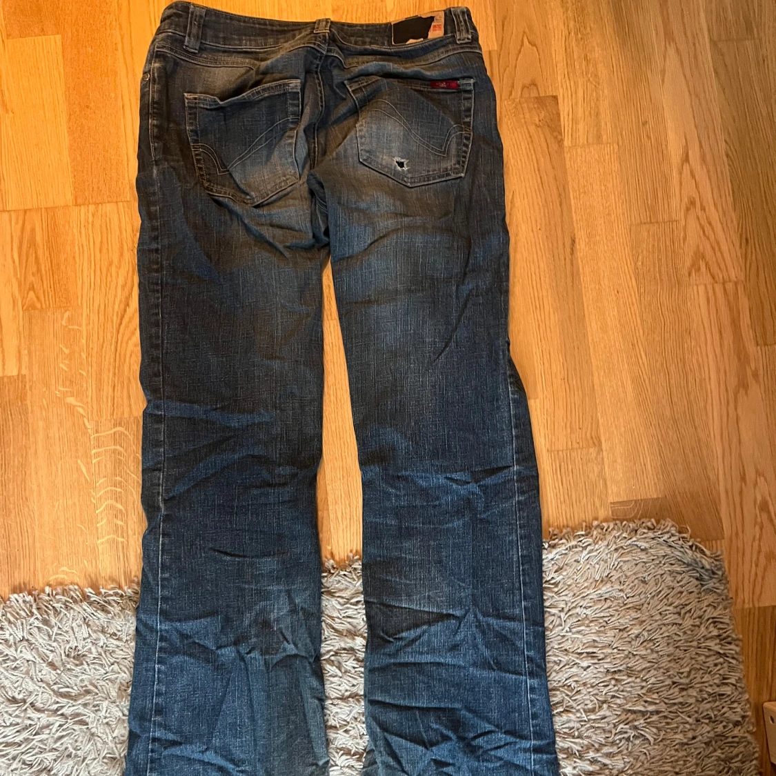 Säljer ett par mörkblå jeans med bootcut-stil från only. De har lite slitningar längst ner på bakre benen (bild 3 och 4)