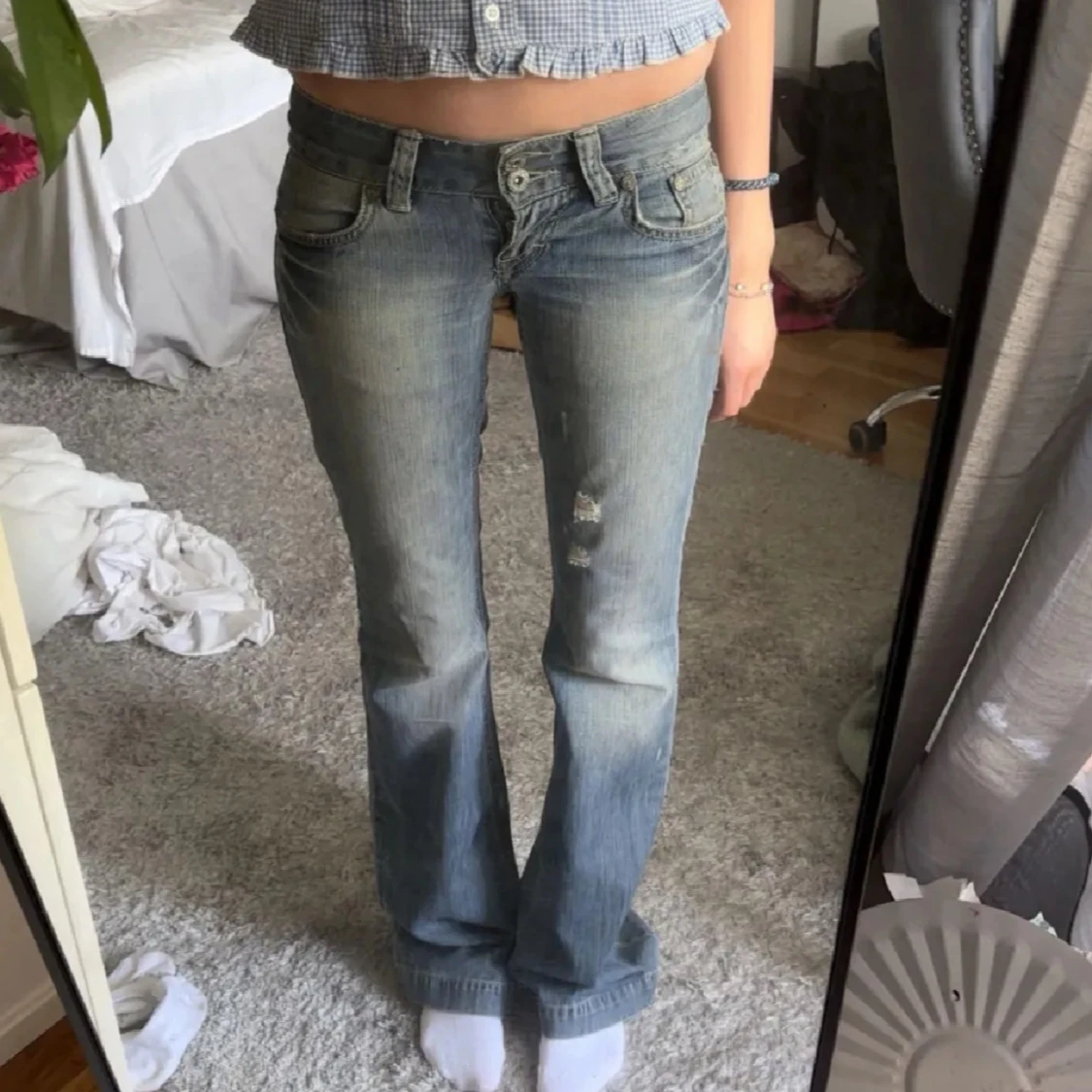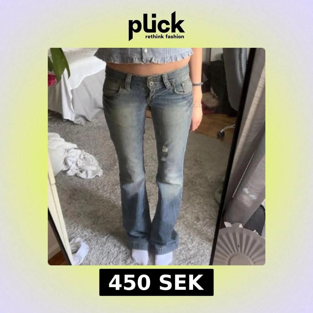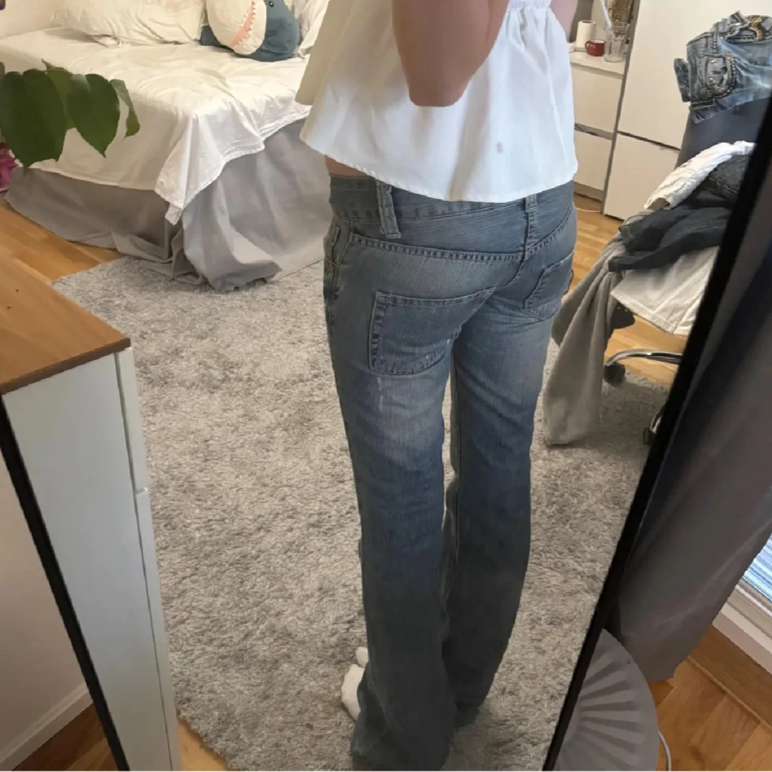 Riktigt snygga jeans. Köpta här på Plick, men passade tyvärr inte mig. Midjemått:38 innerbenslängd:80 går att klippa om de är långa. Så synd att de inte passar då de sitter riktigt fint och lågt i midjan🥰💛 kom gärna privat för frågor eller för bilder!💕 är öppen för prisförslag.