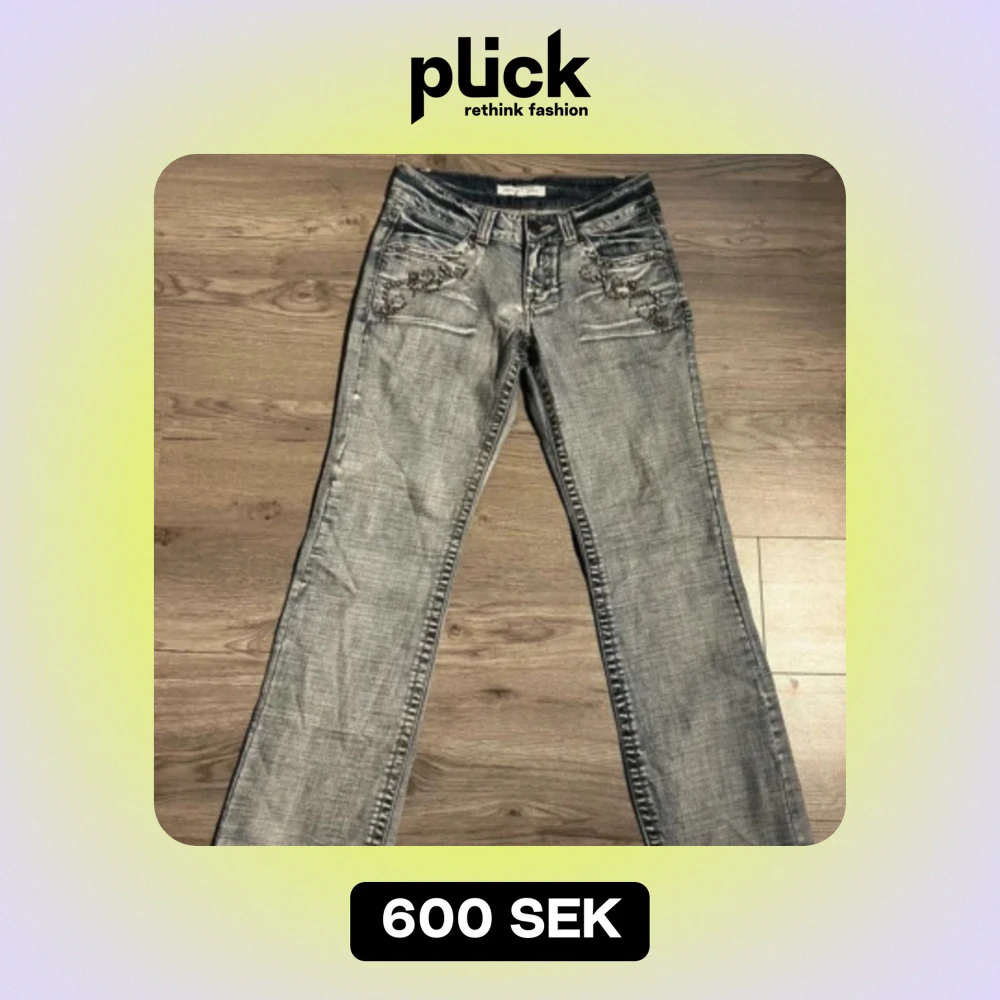 Jätte coola jeans med snygga detaljer som jag köpte second hand men säljer då jag inte helt gillar grunde satt på mig. De är lågmidjade och utsvänga och i väldigt fint skick! Är öppen för byten.