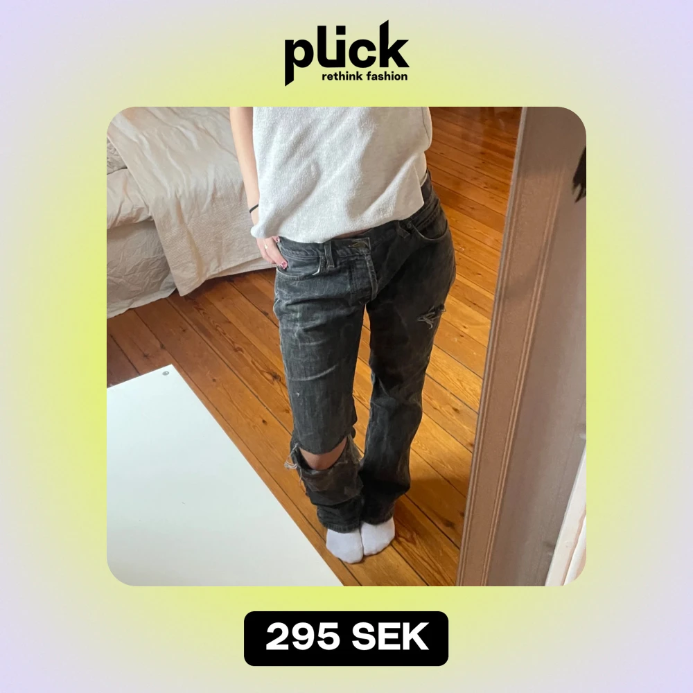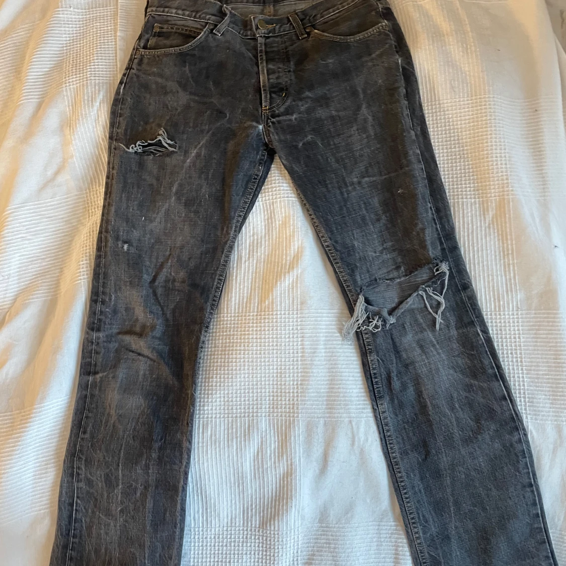 Snygga Lee jeans som är tyvärr är för stora för mig! De har vissa slitningar som ni kan se på bilderna! Är osäker på storlek då det inte står på lappen men beroende på hur man vill att de ska sitta skulle jag säga runt M-L. Som referens är jag 172cm💕💕